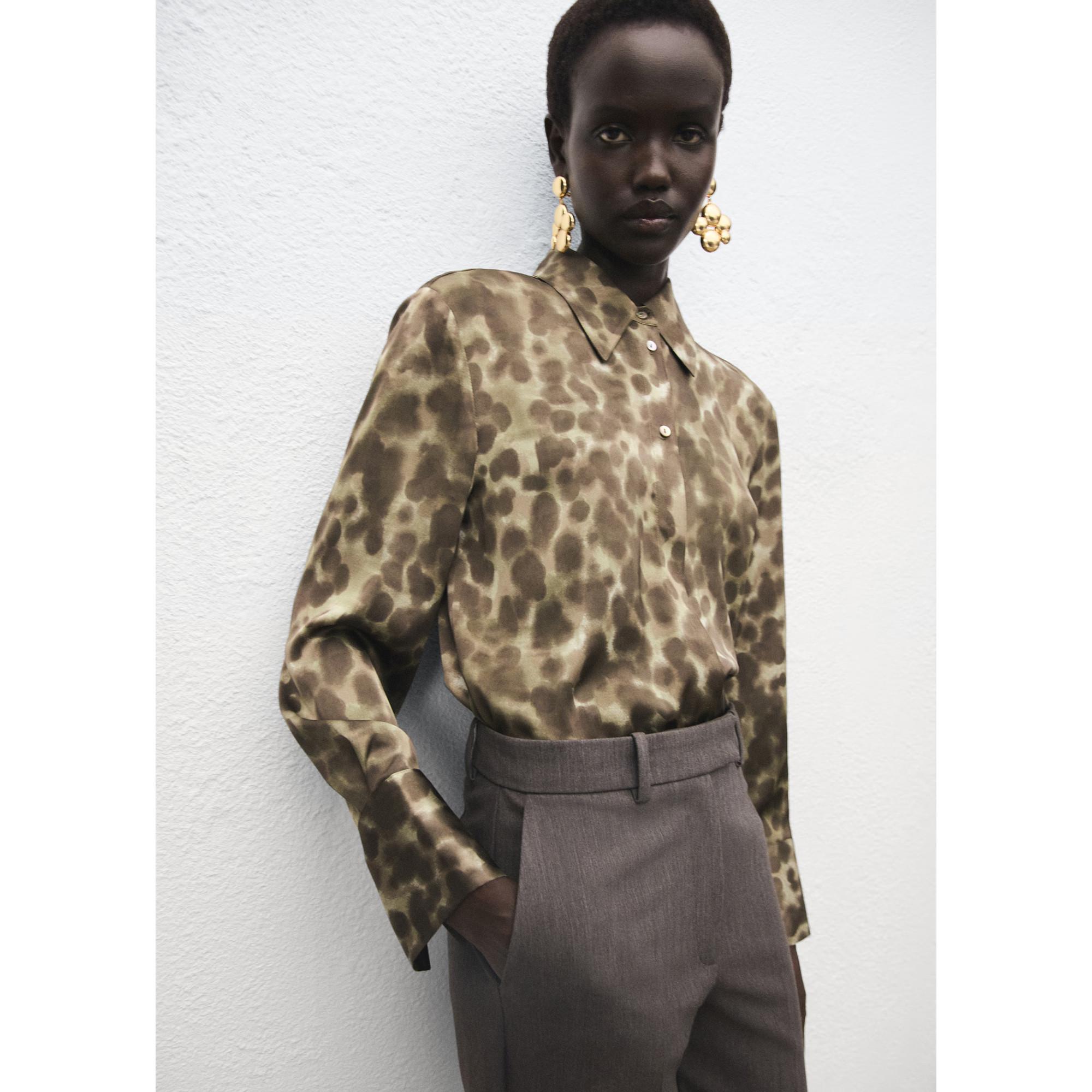 La camicetta stampata in raso Camila unisce tessuto fluido, stampa moderna e colletto classico. Le maniche lunghe con polsini abbottonati e il taglio dritto creano una silhouette elegante e rilassata. Un capo deciso – perfetto per l’ufficio o per dare carattere ai look quotidiani.