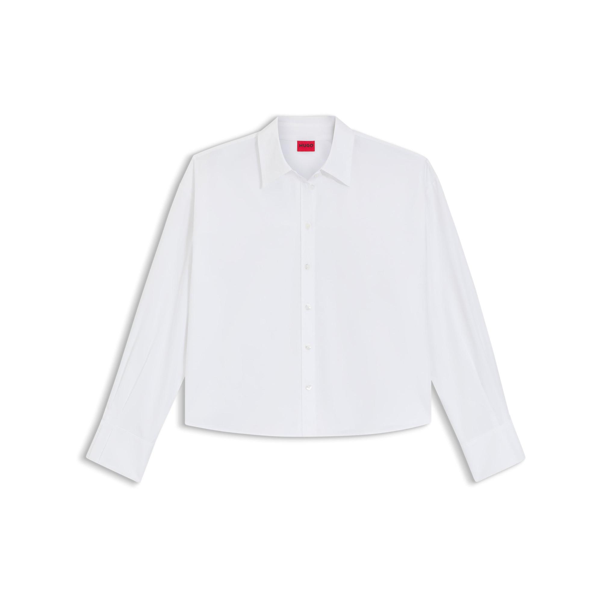Questa camicetta si distingue per la lunghezza accorciata e il classico colletto Kent, per un look contemporaneo. Realizzata in morbida popeline di cotone con gemelli dorati incisi con il logo. Parzialmente in cotone biologico – elegante e responsabile.