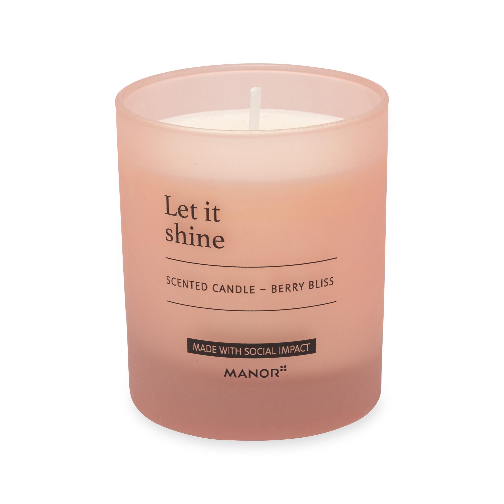 Questa candela profumata in vetro firmata Manor aumenta il benessere con sublimi creazioni di fragranze e stampa del motto, anche quando non è accesa.