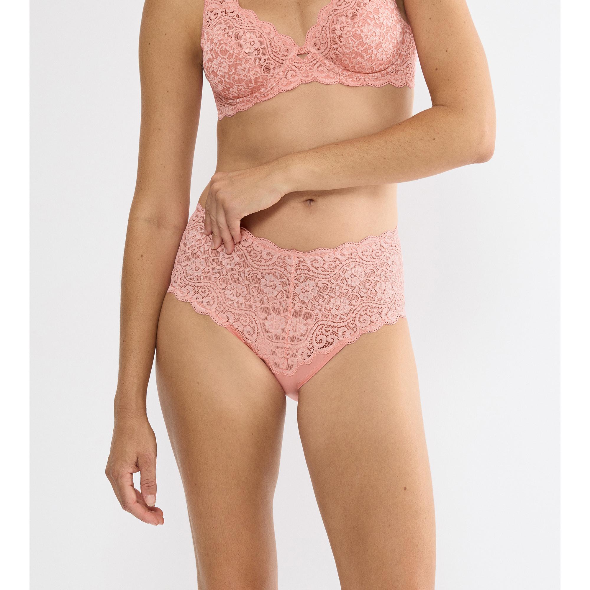 Scoprite il comfort di un sostegno completo con il maxi slip Amourette. Caratterizzato da un nuovo look in pizzo, questo intimo non rinuncia allo stile.