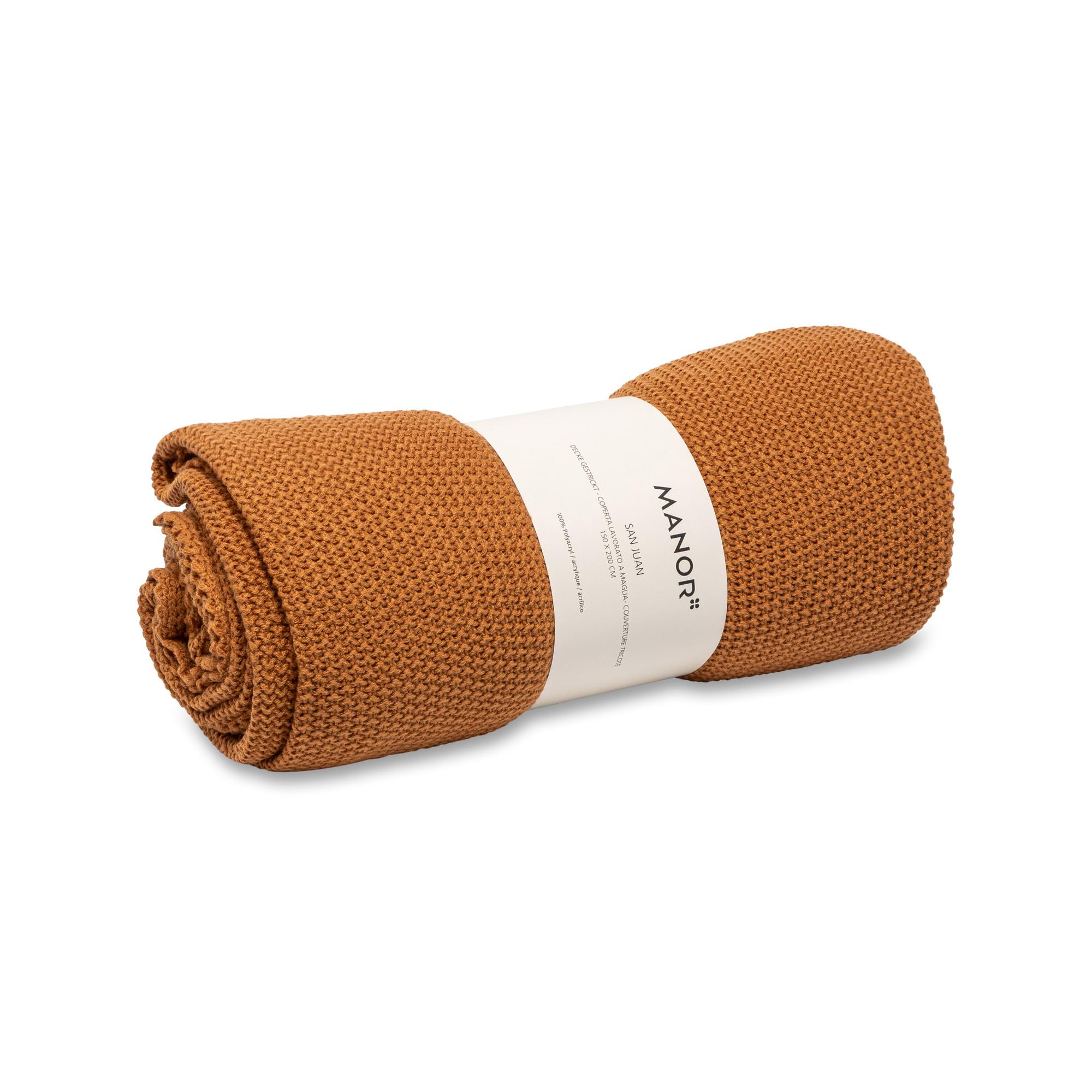 Questo plaid firmato Manor realizzato in maglia grossa morbida e calda crea un ambiente accogliente con un colore sobrio e un design semplice.