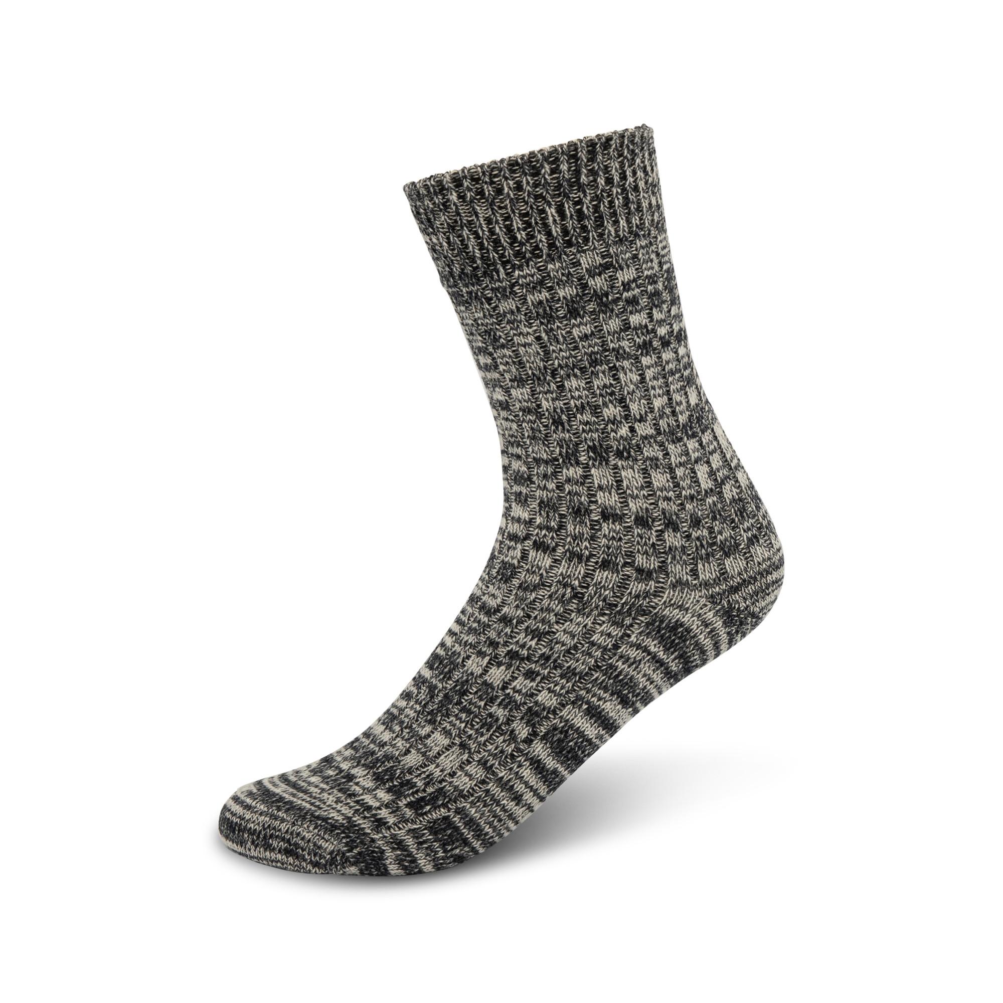 Queste calze presentano un classico design a maglia screziata, offrendo comfort ed estetica senza tempo. Il polsino a costine assicura una vestibilità sicura, rendendole adatte per l'uso quotidiano.