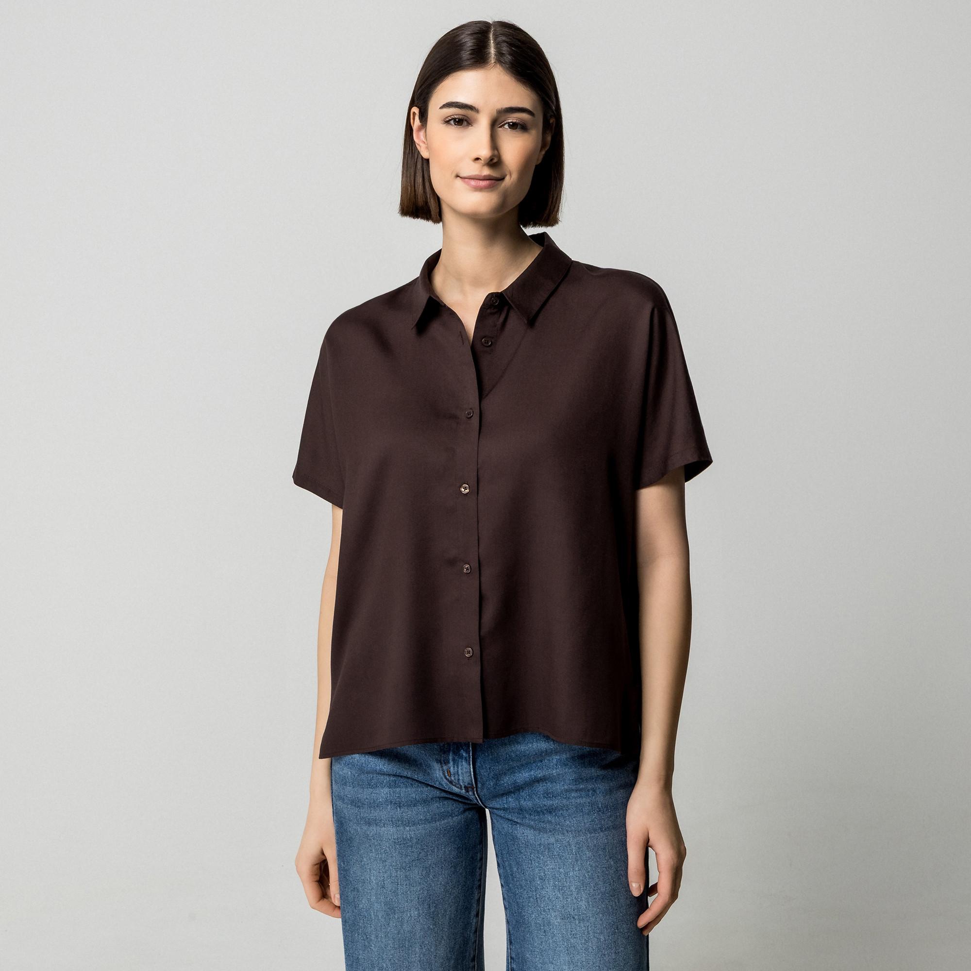 Questa camicetta a maniche corte offre un look intramontabile e alla moda. Presenta un colletto classico e un'abbottonatura a tutta lunghezza, rendendola un'aggiunta versatile a qualsiasi guardaroba.