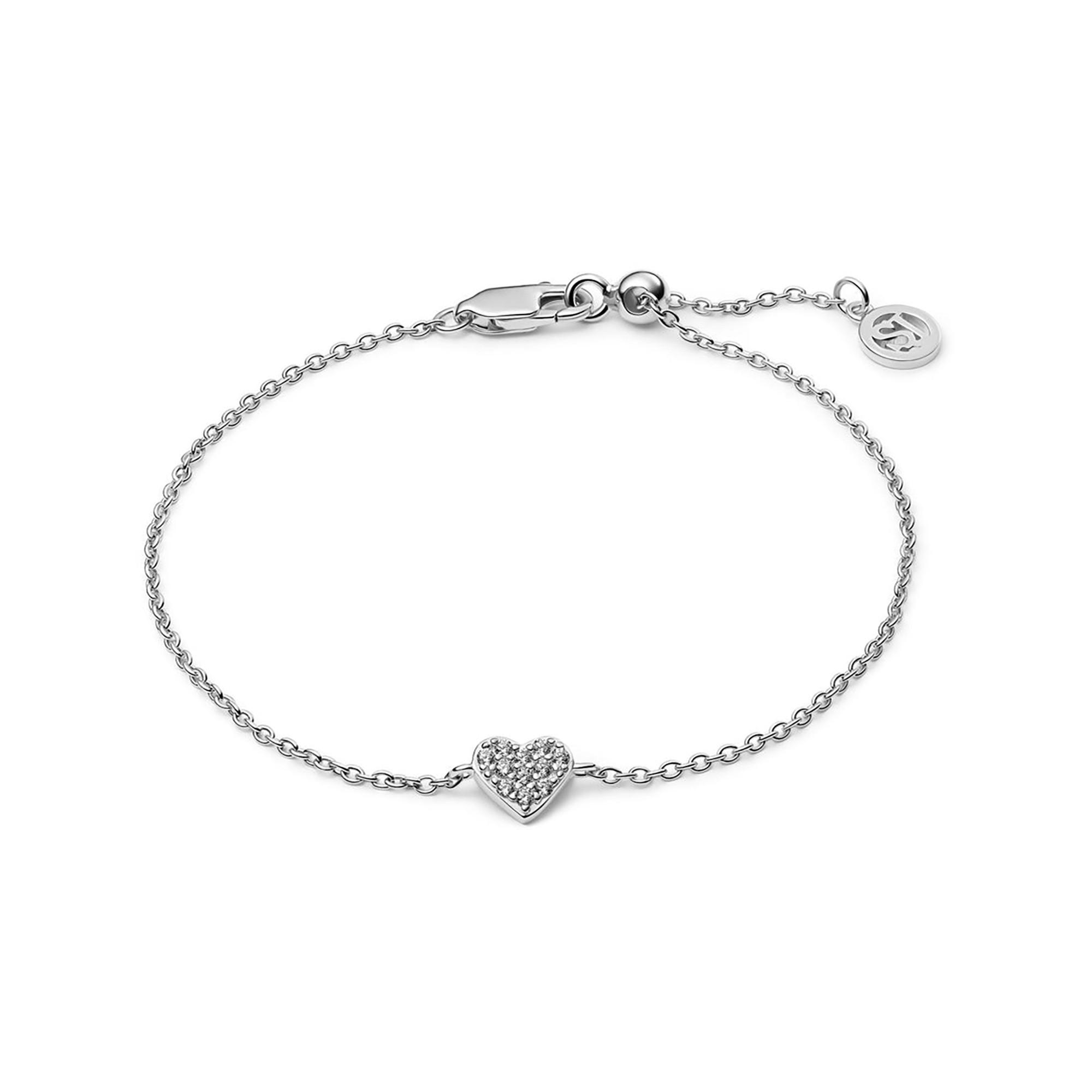 Un elegante bracciale in argento sterling 925 rodiato con superficie lucidata, impreziosito da zirconi bianchi taglio sfaccettato. Questo gioiello si distingue per la lavorazione raffinata e la sua lucentezza sobria ed elegante.