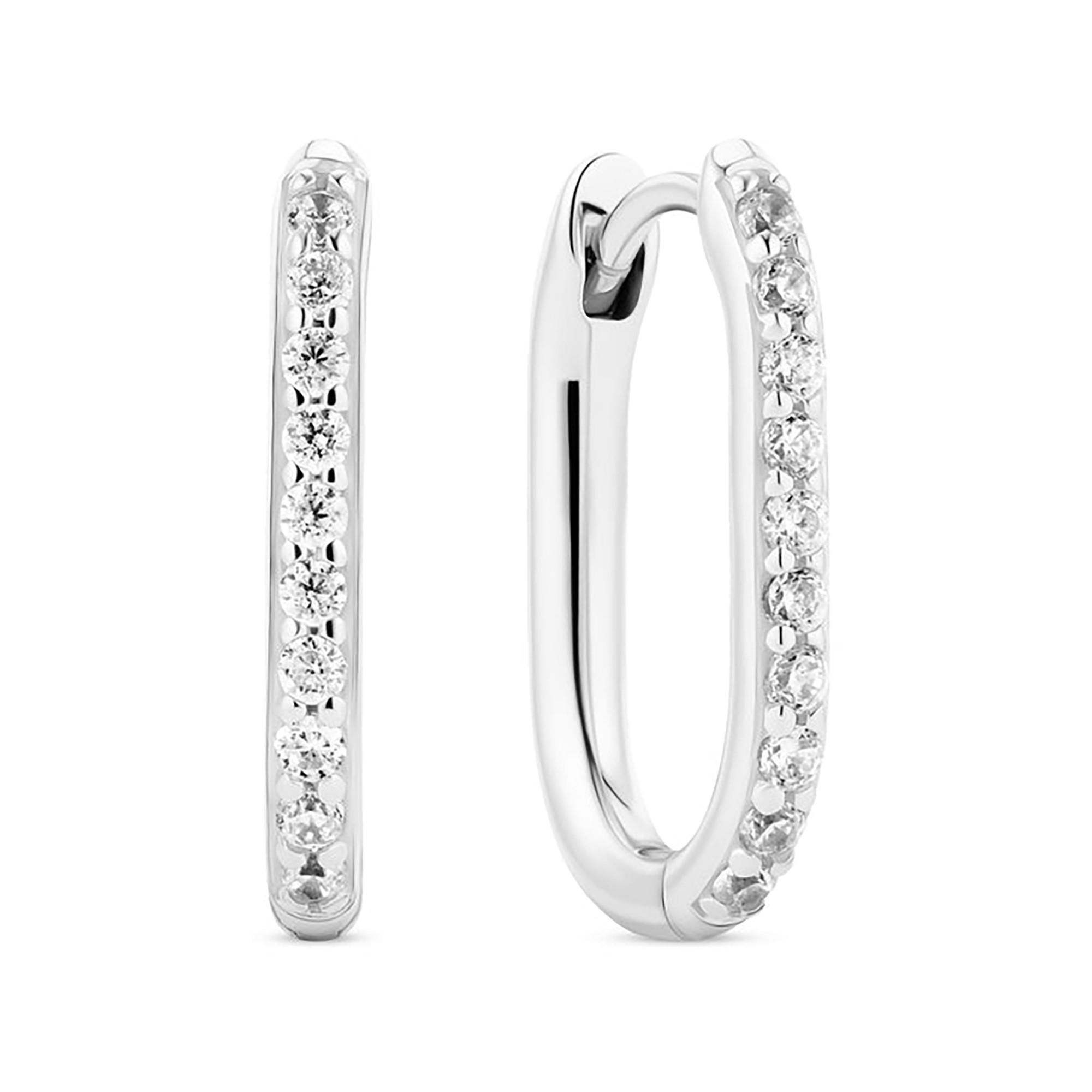Eleganti orecchini in argento sterling 925 rodiato con superficie lucidata, impreziositi da zirconi bianchi taglio sfaccettato. Questo raffinato gioiello unisce brillantezza scintillante ed eleganza senza tempo.