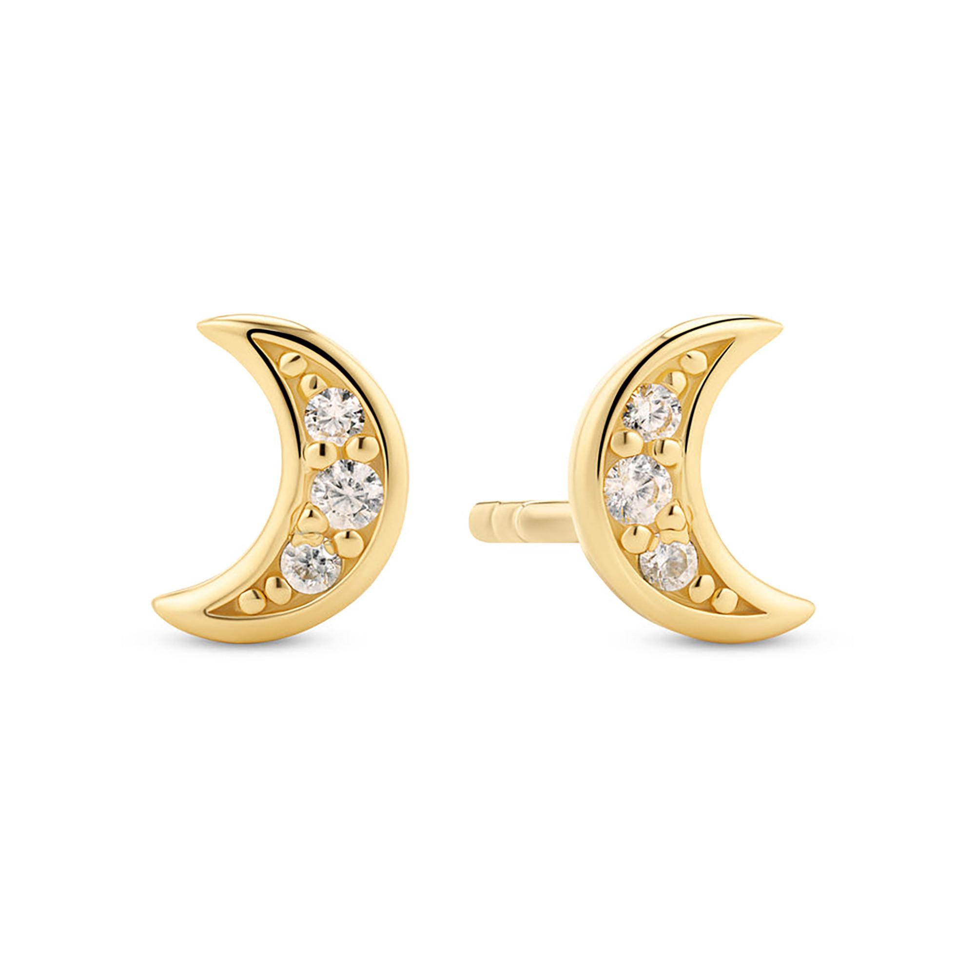 Orecchini in argento sterling 925 placcato oro 18 carati con superficie lucida, impreziositi da zirconi bianchi tagliati a sfaccettatura per un aspetto elegante e brillante. Ideali per occasioni speciali e outfit sofisticati.