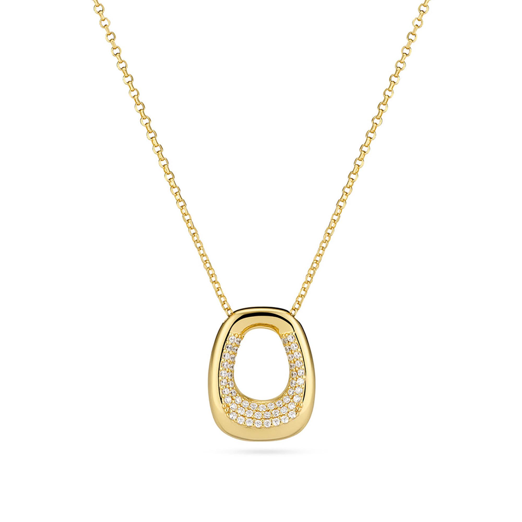 Collana in argento sterling 925 placcato oro 18 carati con superficie lucida, impreziosita da zirconi bianchi tagliati a sfaccettatura per un design lussuoso e brillante. Perfetta per donare un tocco elegante a ogni look.