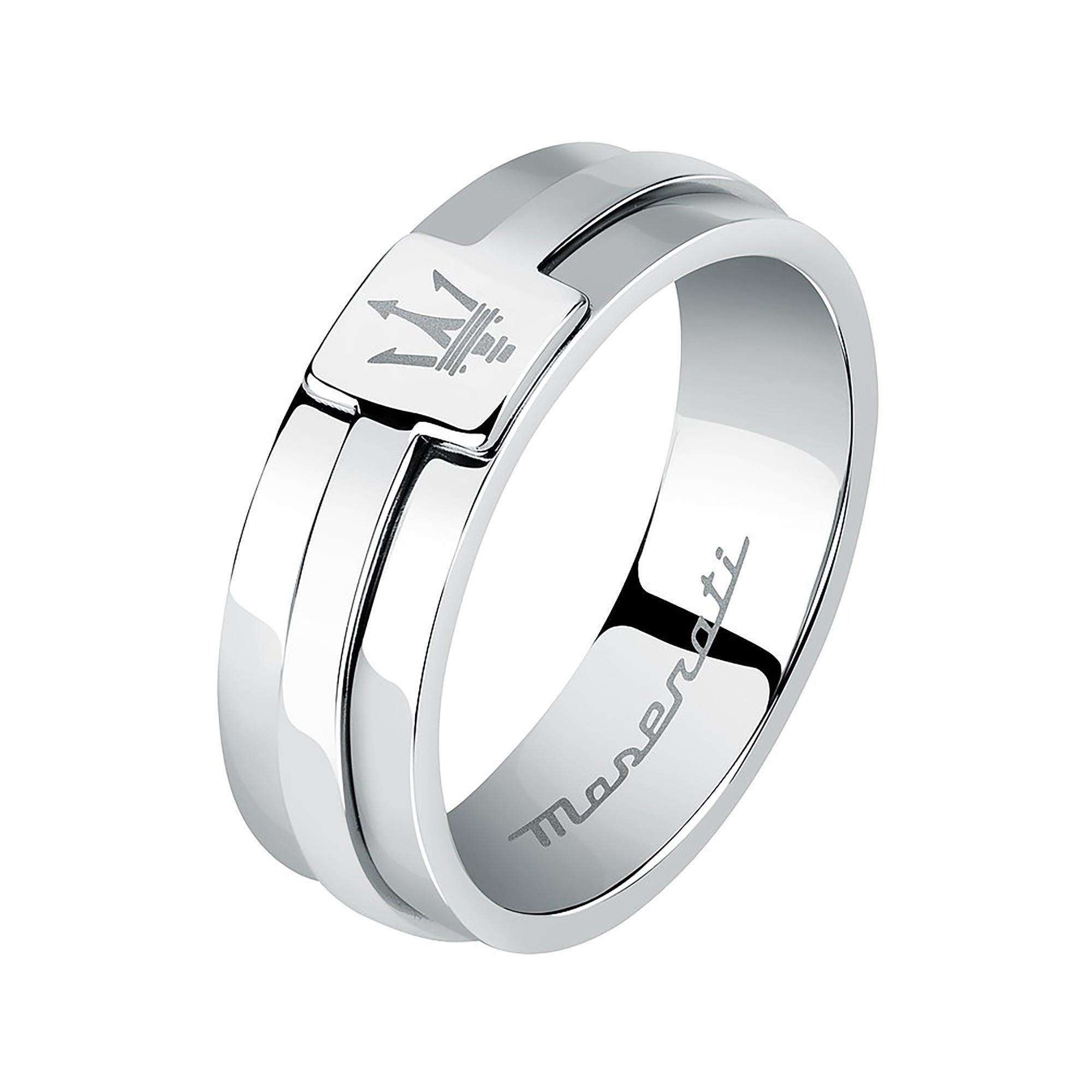 Questo anello MASERATI in acciaio inossidabile argentato combina l'eleganza sportiva con una presenza distintiva. Sulla linea centrale ampia brilla il tridente