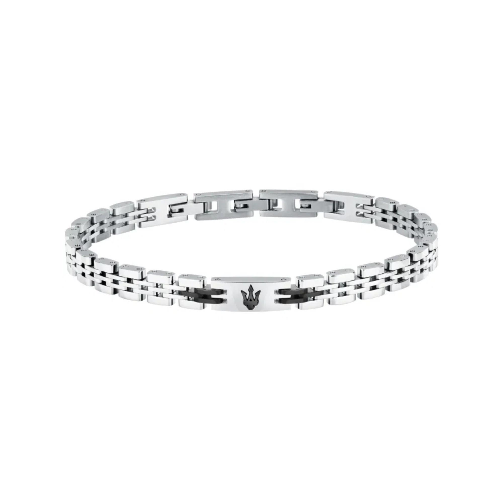 Questo bracciale da uomo in acciaio inossidabile combina elementi argentati e neri in un gioiello elegante. La pratica chiusura a clip consente di regolare la lunghezza in modo flessibile