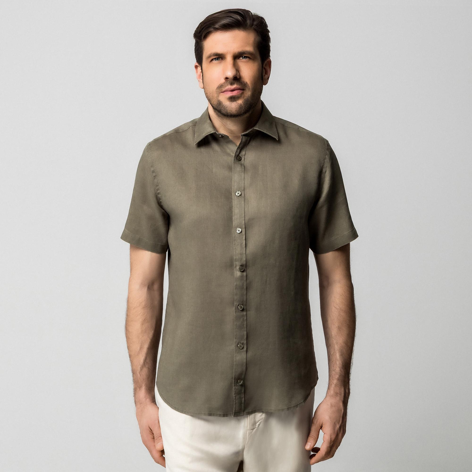 Questa camicia a maniche corte offre un'aggiunta classica e versatile a qualsiasi guardaroba. Il suo design presenta un colletto tradizionale e una chiusura frontale a bottoni completa, fornendo un look pulito e raffinato adatto a varie occasioni. La vestibilità regolare della camicia assicura comfort per tutto il giorno.