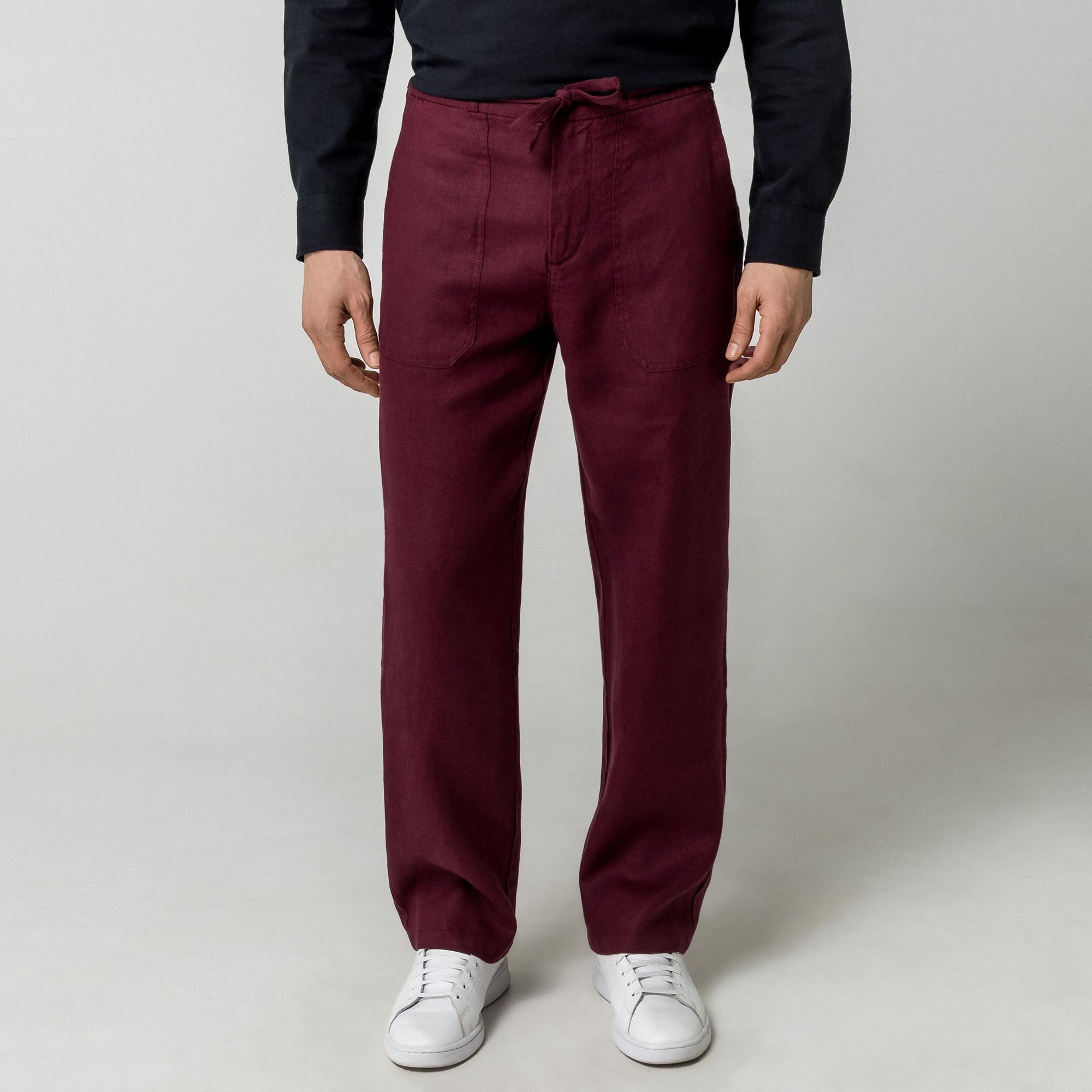 Questi pantaloni sono realizzati in un tessuto di lino leggero e traspirante, offrendo comfort e una vestibilità rilassata. Il design presenta una vita elasticizzata per facilitare l'indosso e polsini elasticizzati alle caviglie, creando una silhouette moderna.