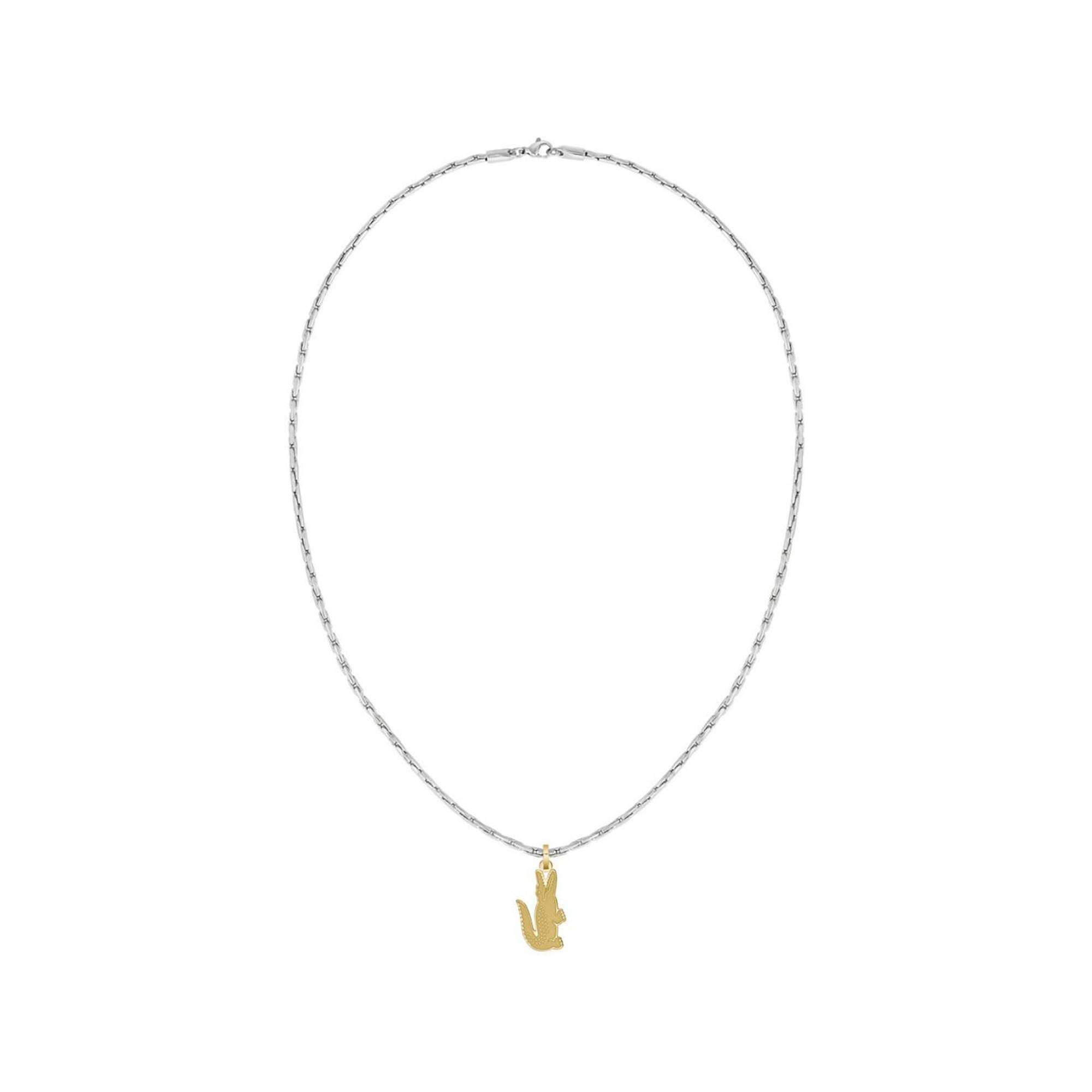 La collana da Lacoste Arthor modello 2040551 si distingue per il design elegante e femminile in acciaio dorato. Il ciondolo centrale con il logo iconico di Lacoste aggiunge un tocco raffinato e chic a qualsiasi outfit.