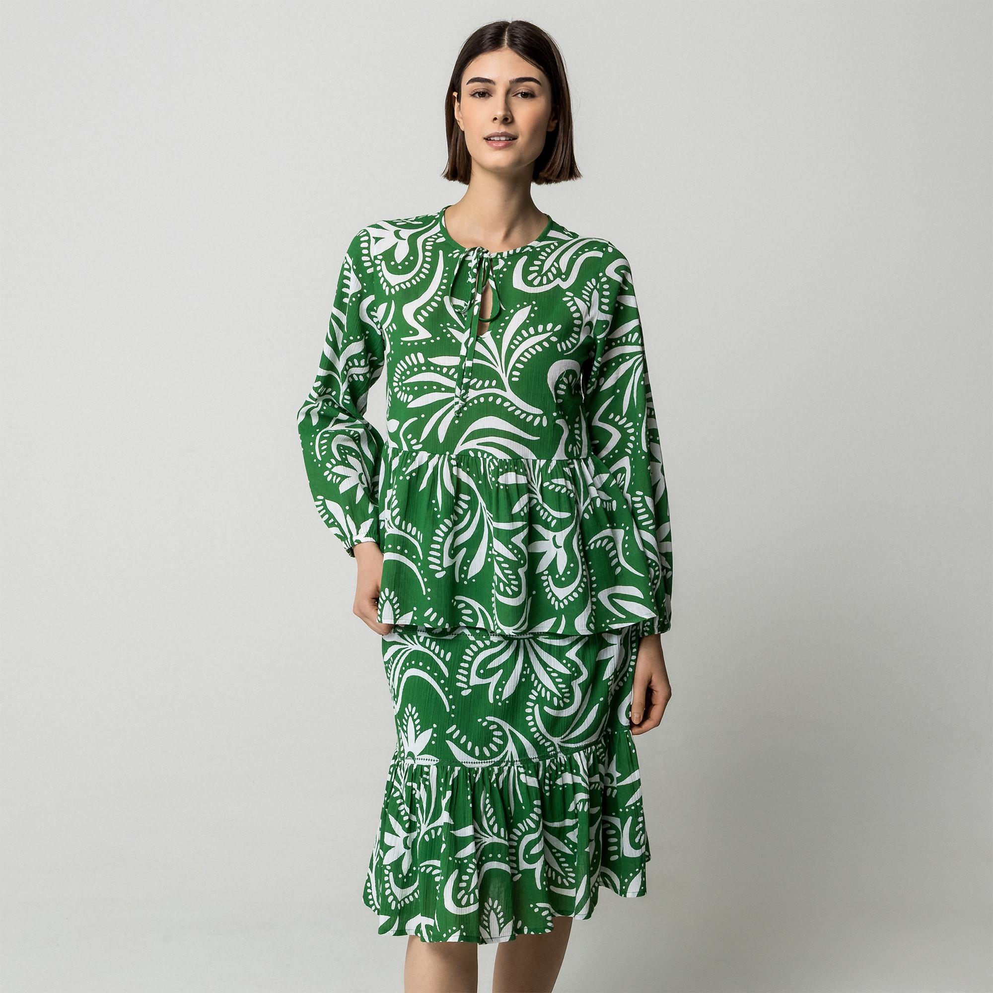 Manor Woman Camicetta Stampata a Maniche Lunghe con Dettaglio da Annodare
