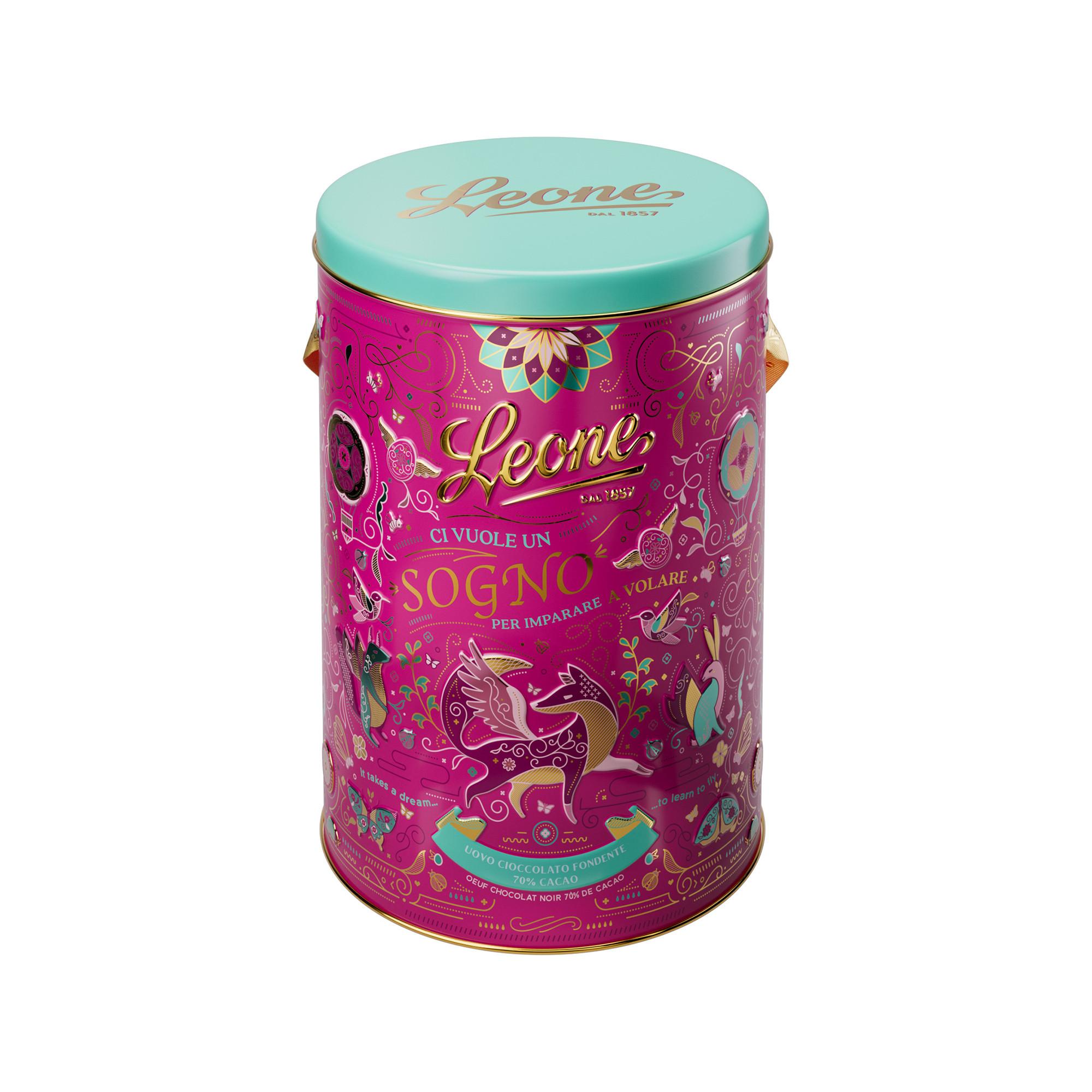 L'uovo di Pasqua Leone in cioccolato fondente con il 70% di cacao offre un piacere intenso per gli amanti dei sapori forti. L'uovo da 300 g è confezionato in un'elegante scatola di metallo e convince con una ricetta raffinata e di alta qualità che esalta ogni sfumatura di gusto. All'interno si trova anche una piccola sorpresa che rende speciale l'esperienza pasquale. Dal 1857 Pastiglie Leone è sinonimo di produzione tradizionale, ingredienti selezionati e un'ampia varietà di dolci artigianali. Il marchio combina ricette collaudate con un senso della qualità e offre prodotti che uniscono gusto e cura nella scelta degli ingredienti.
