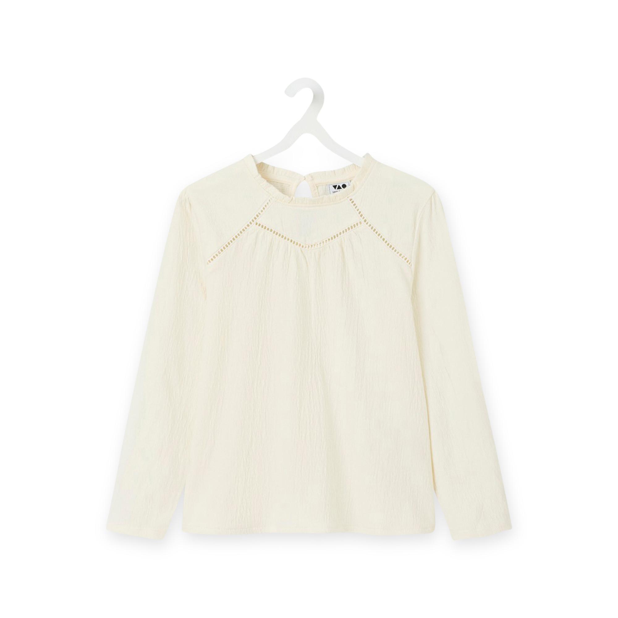 La camicetta di Tao Kids è in tinta unita, ha una chiusura con bottoni sul collo ed è decorata con graziosi volant corti sul colletto.