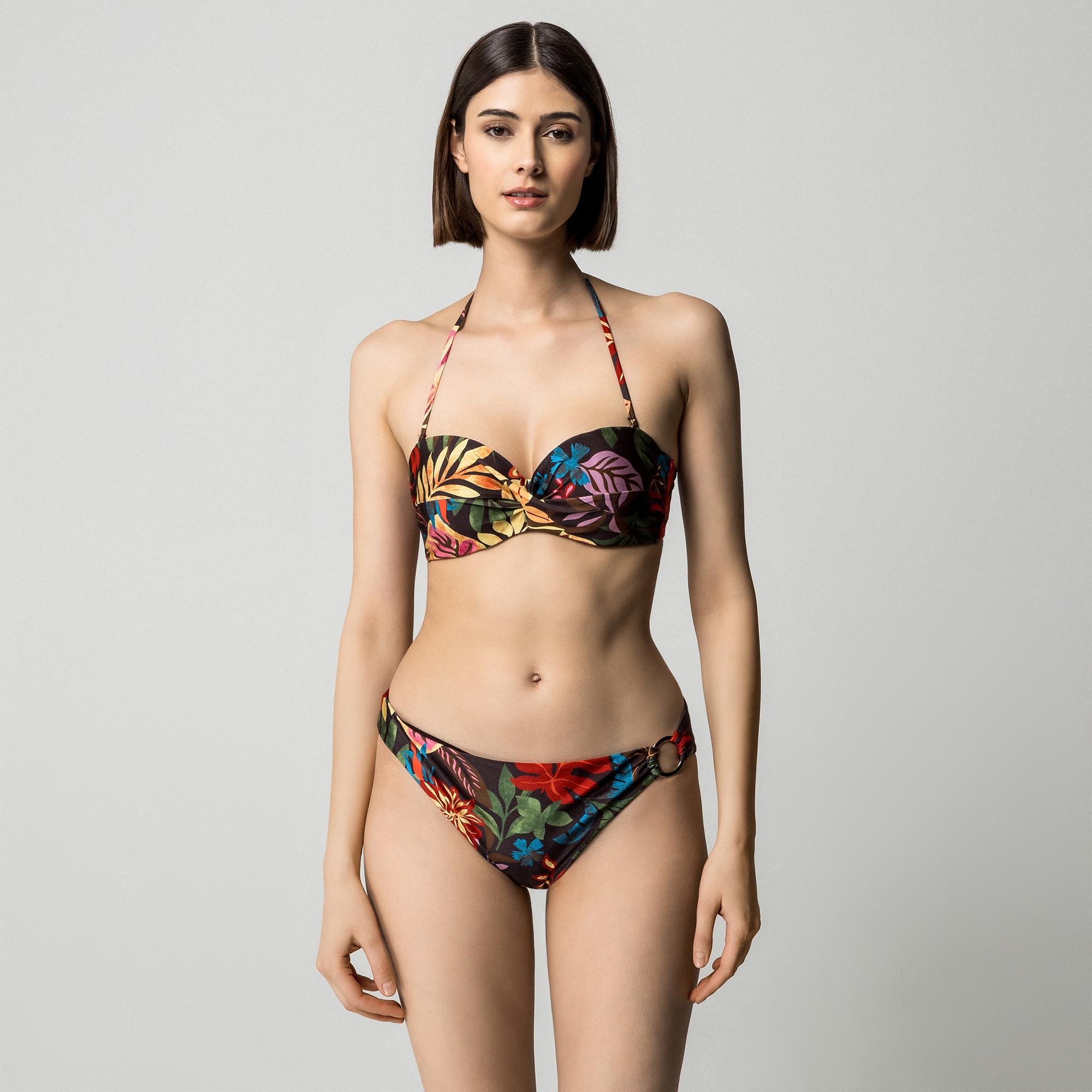 Queste mutandine bikini presentano un vivace motivo floreale, perfette per un look elegante in spiaggia o in piscina. Il design include un dettaglio ad anello decorativo sul lato, che aggiunge un tocco di eleganza al costume da bagno.