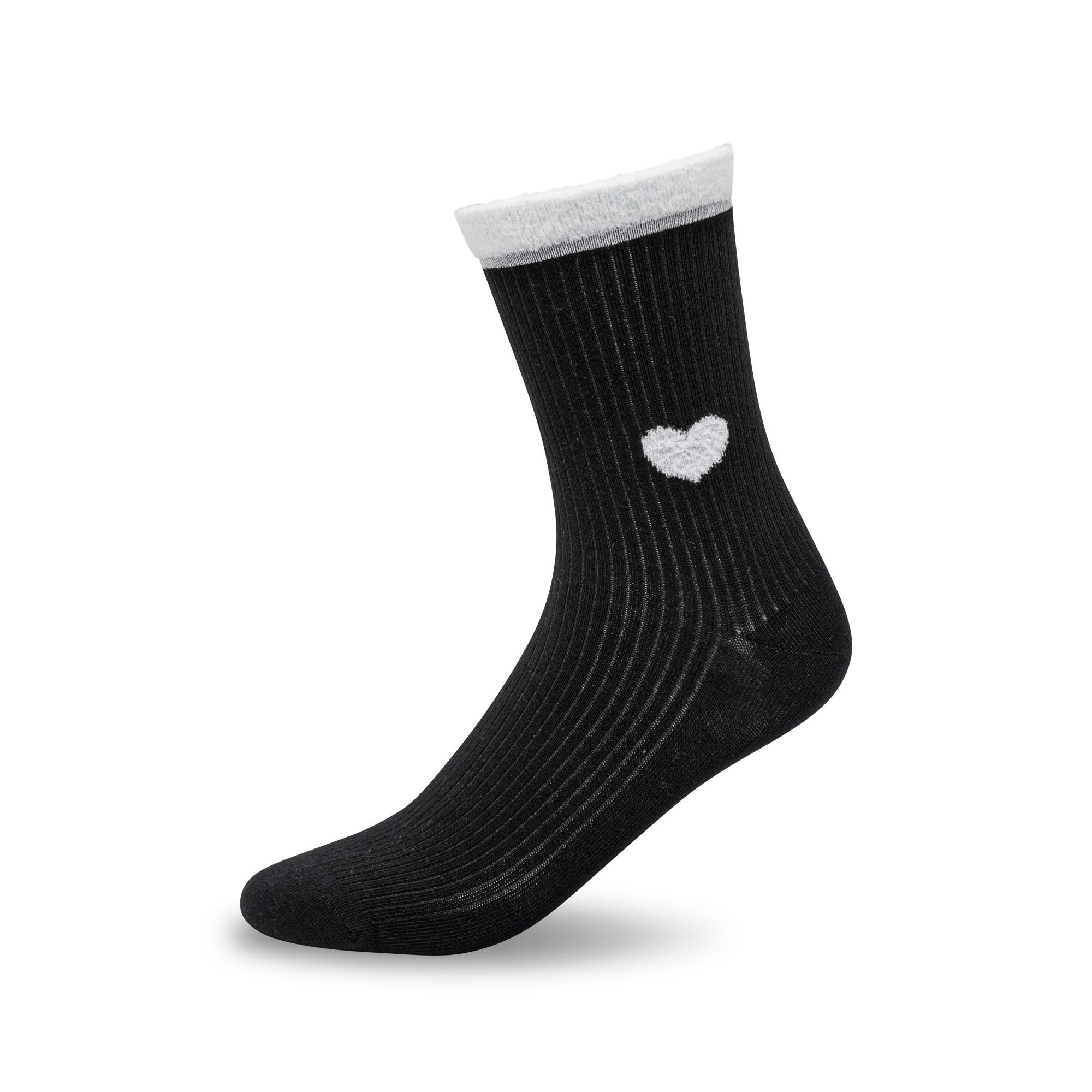 Queste calze a costine classiche presentano un affascinante motivo a cuore, aggiungendo un tocco di dolcezza a qualsiasi outfit. Il design include un bordo a contrasto per un dettaglio elegante.