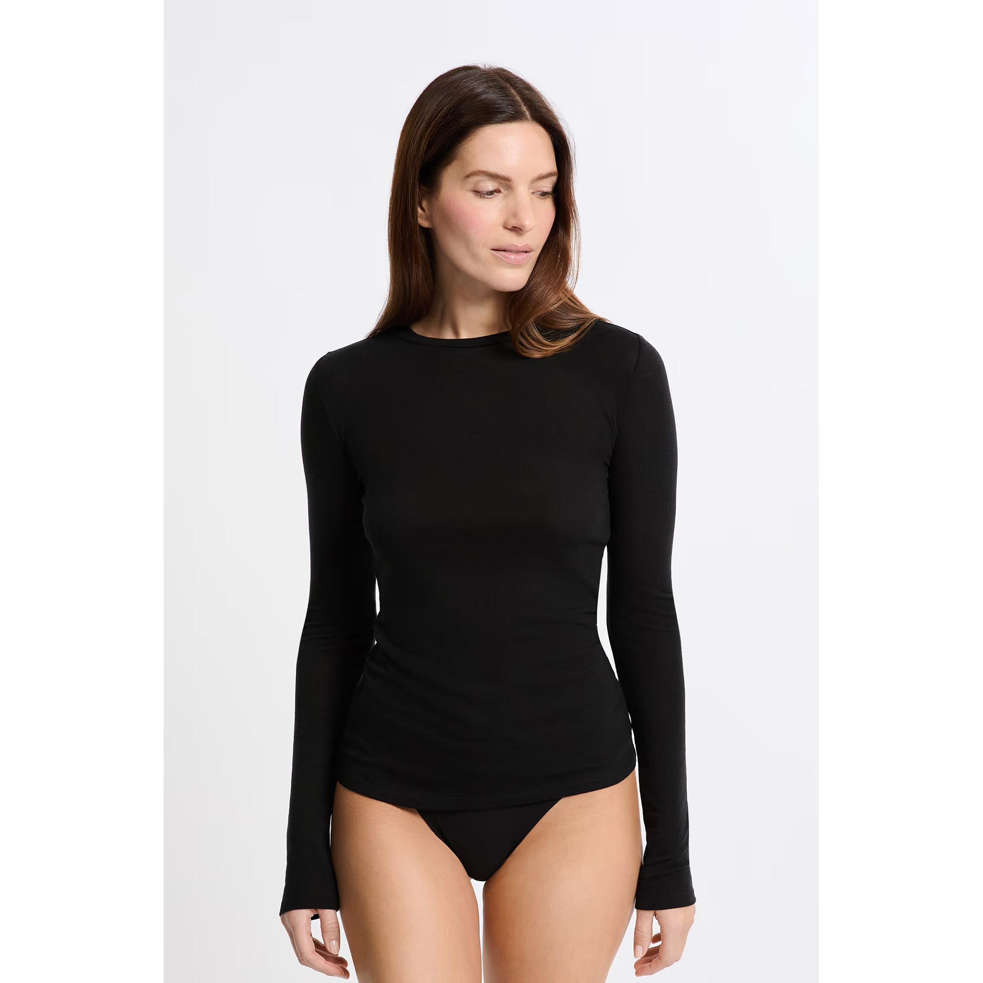 La maglia termica con scollo rotondo di Etam è ideale per le giornate fredde. La miscela di lana e viscosa garantisce calore e morbidezza sulla pelle. Il design semplice la rende perfetta per look a strati comodi e versatili.