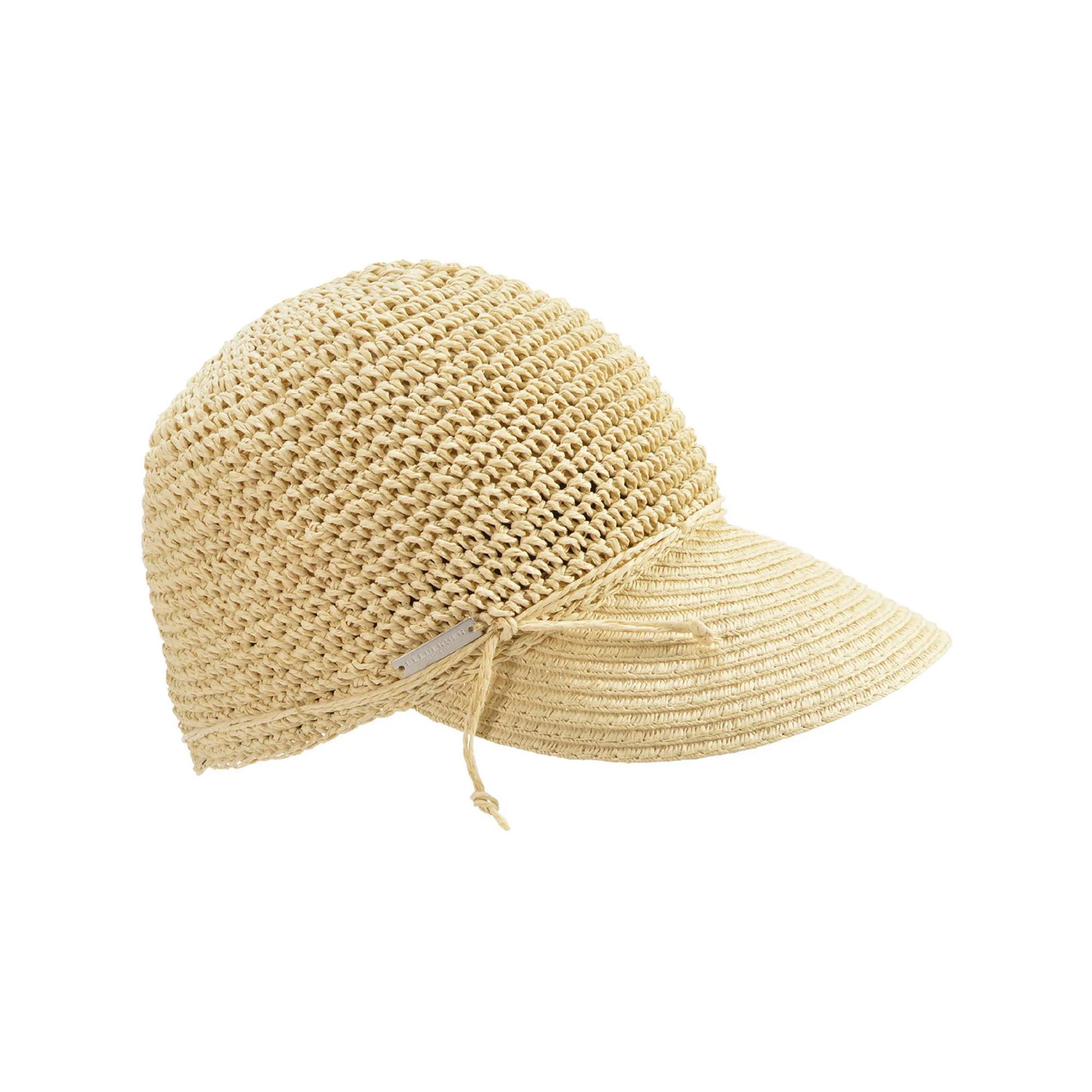 Cappello di Seeberger in lavorazione all’uncinetto flessibile con fascia interna elastica per una vestibilità confortevole. La visiera chiusa in paglia di carta protegge dal sole e valorizza i lineamenti del viso.