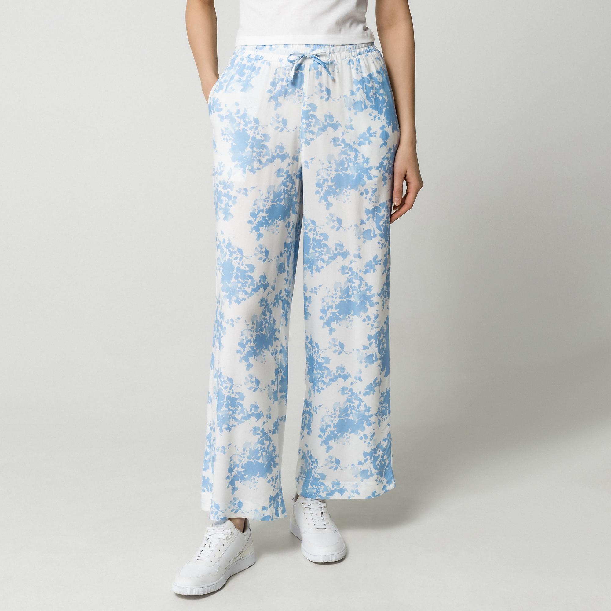 Questi pantaloni presentano una vivace fantasia floreale, offrendo un look fresco ed elegante. Il design include una comoda fascia elastica in vita con coulisse per una vestibilità regolabile, garantendo comfort e stile.