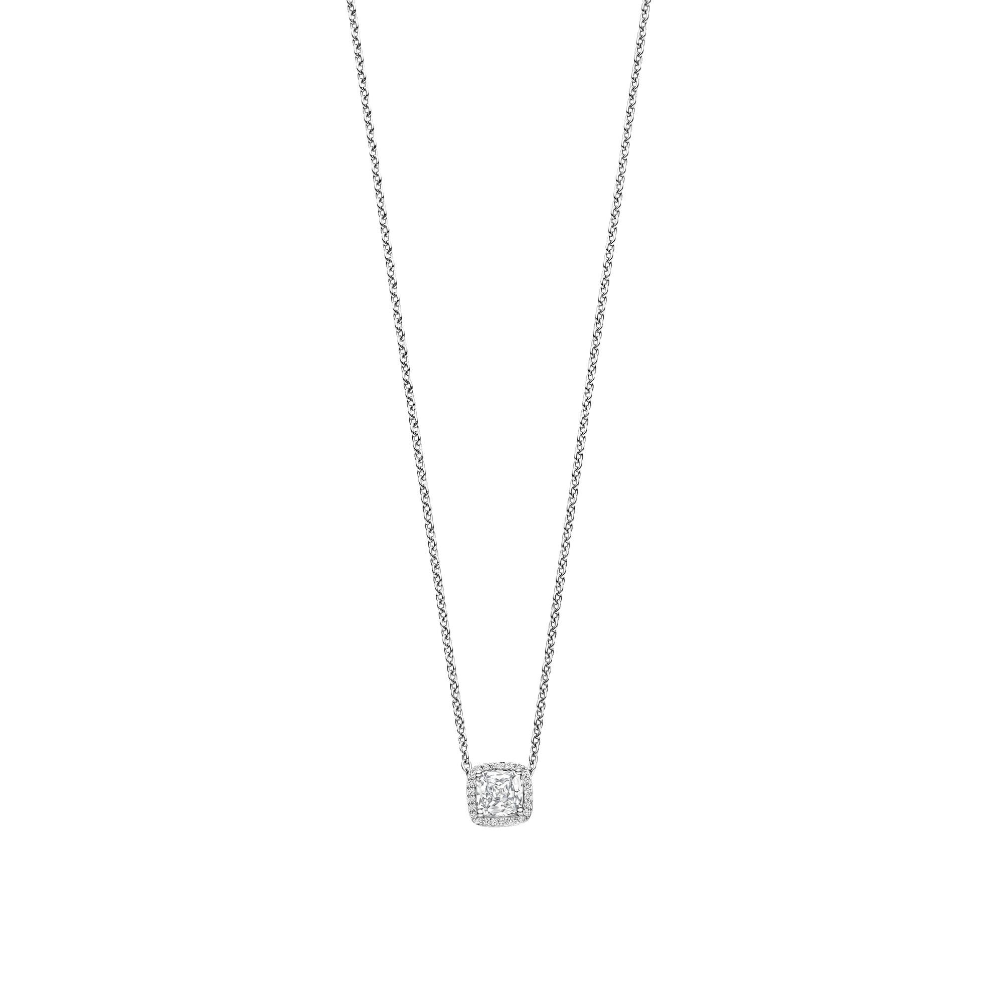 La collana pendente TI SENTO si distingue per uno zircone bianco a cuscino, incorniciato da pietre pavé scintillanti, che crea un’eleganza luminosa. L’argento sterling 925 di alta qualità con placcatura in rodio di grado platino garantisce brillantezza duratura e comfort, mentre il pezzo centrale di 8 mm arricchisce ogni look con stile.