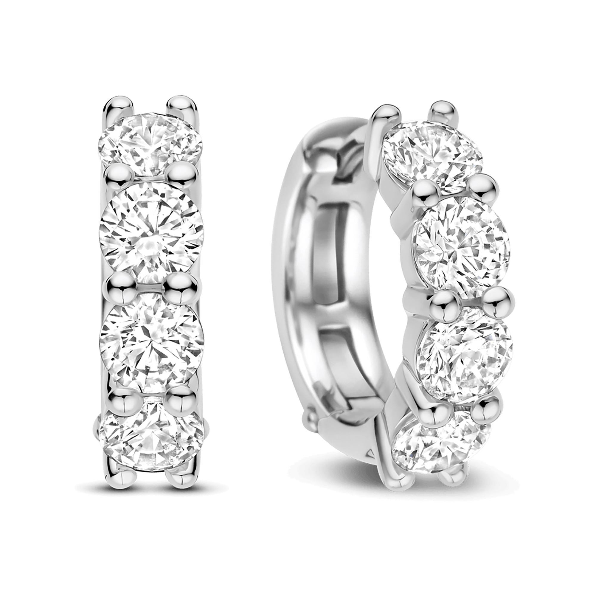 Gli orecchini TI SENTO in argento sterling 925 con finitura rodiata si presentano come sottili huggies dal brillante chiaro e fresco. Un sottile nastro pavé di zirconi bianchi sulla parte frontale dona un tocco discreto di scintillio, mentre la leggerezza e la chiusura a cerniera assicurano un comfort totale – perfetti da soli o in abbinamento.