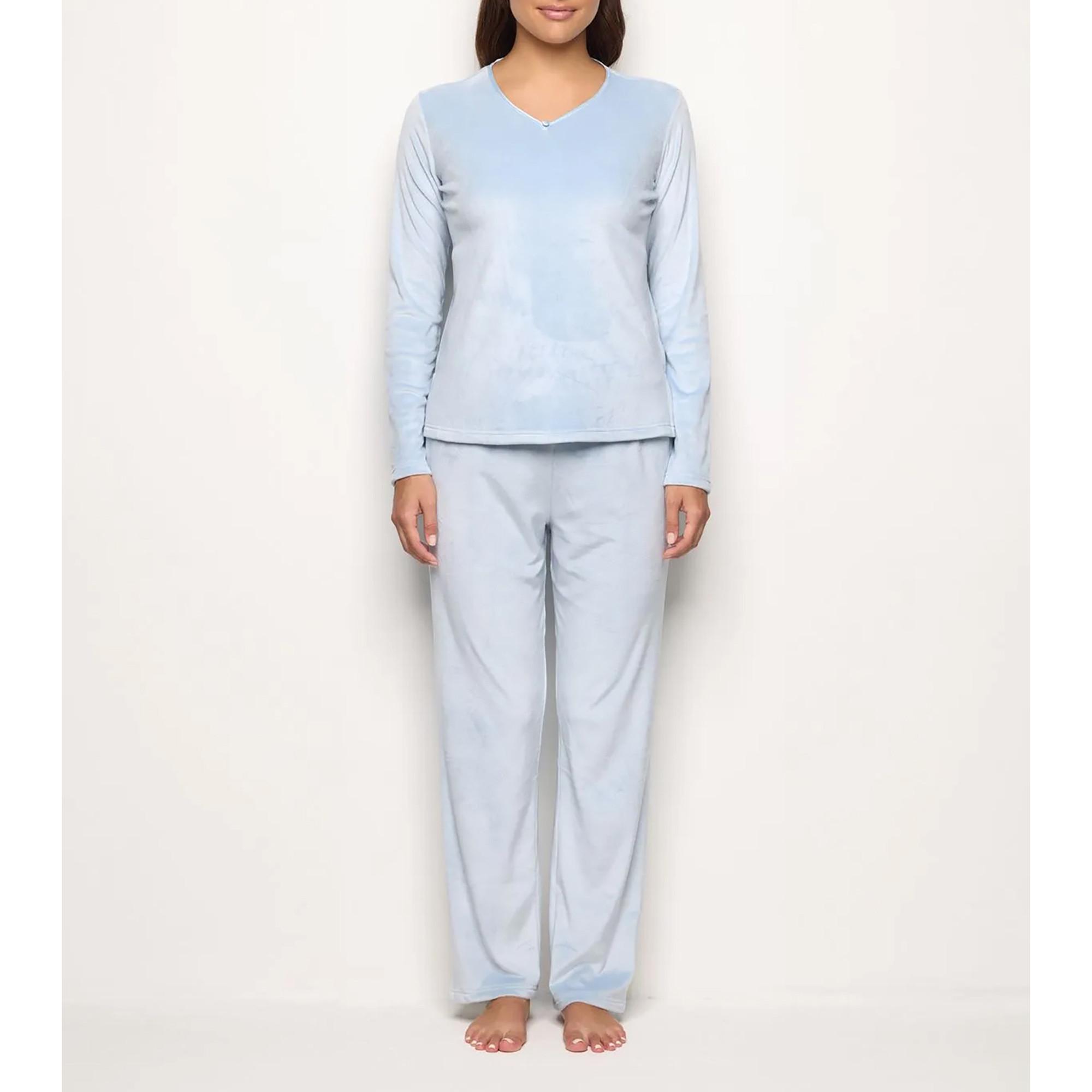 Questo pigiama lungo in ciniglia offre il massimo comfort nelle giornate fredde. Il set comprende una maglia a maniche lunghe e un pantalone lungo in tessuto particolarmente morbido. È perfetto per rilassarsi a casa durante la stagione autunno-inverno.