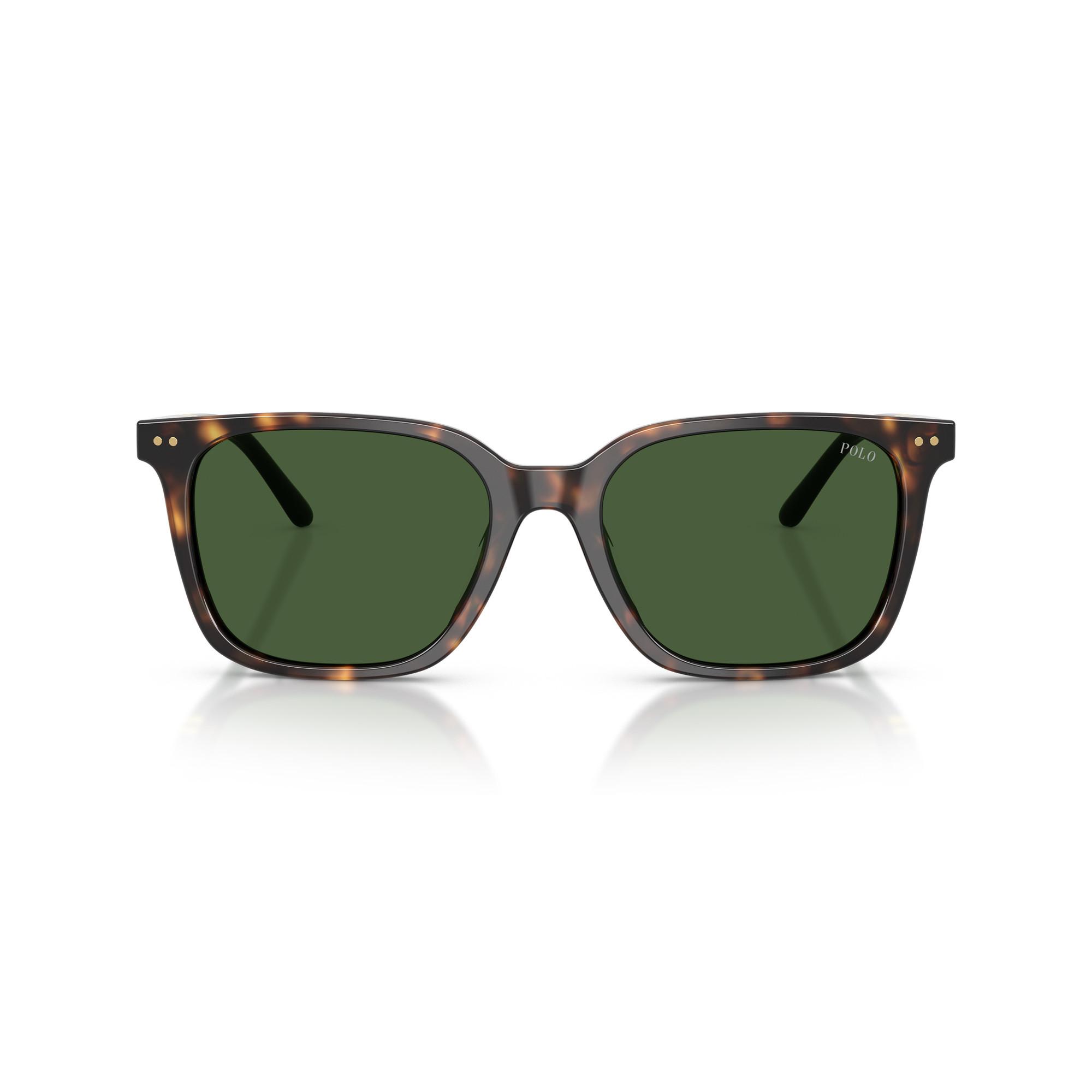 Questi occhiali da sole quadrati di Polo Ralph Lauren offrono un accessorio classico e versatile. Il design presenta una montatura a cerchio completo con un distintivo motivo tartarugato, completato da lenti verde scuro che offrono un contrasto elegante. Le aste sono di un verde scuro uniforme con due strisce gialle vicino alle cerniere, aggiungendo un sottile tocco di colore e riconoscimento del marchio. Il logo Polo è discretamente posizionato sulle aste, migliorando l'estetica generale.