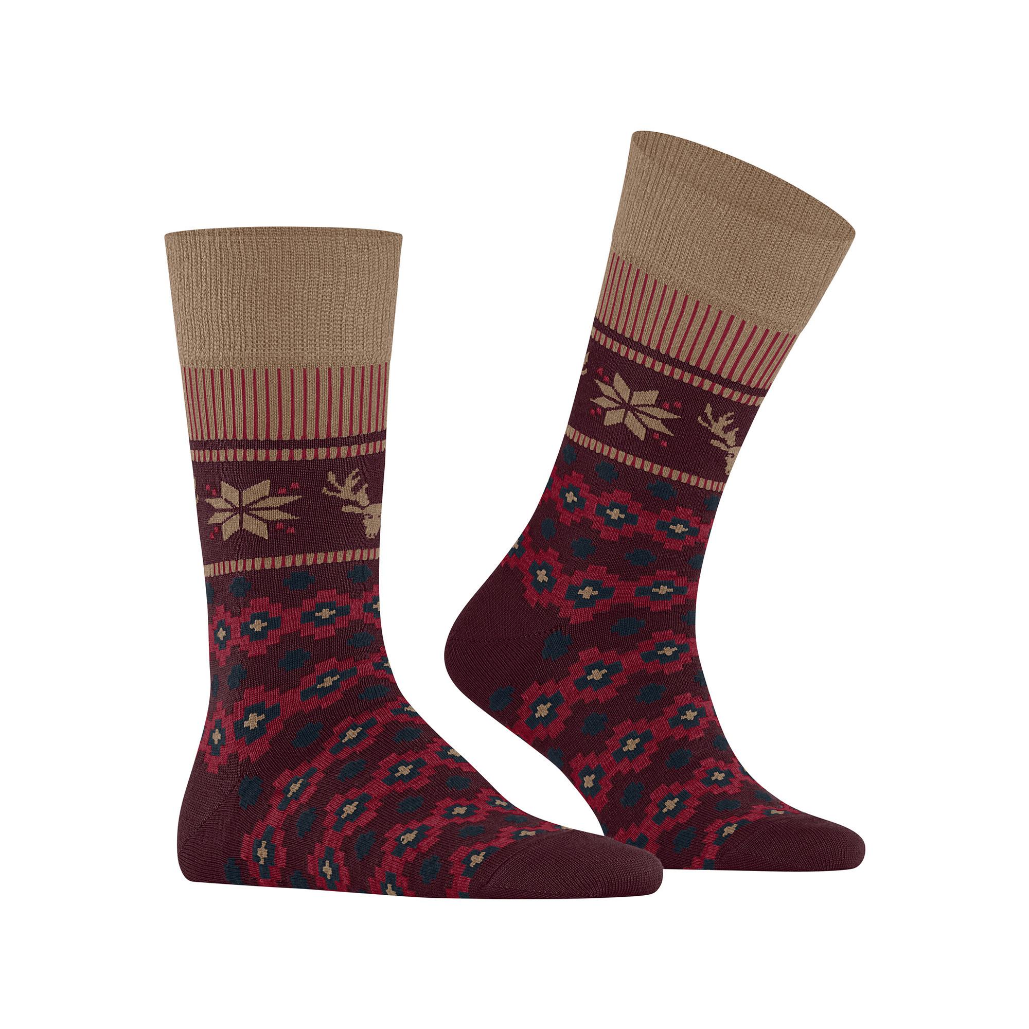 Queste calze presentano un motivo festivo, rendendole un accessorio elegante per varie occasioni. Il design include un mix di forme geometriche e motivi di renne, aggiungendo un tocco di fascino a qualsiasi outfit.