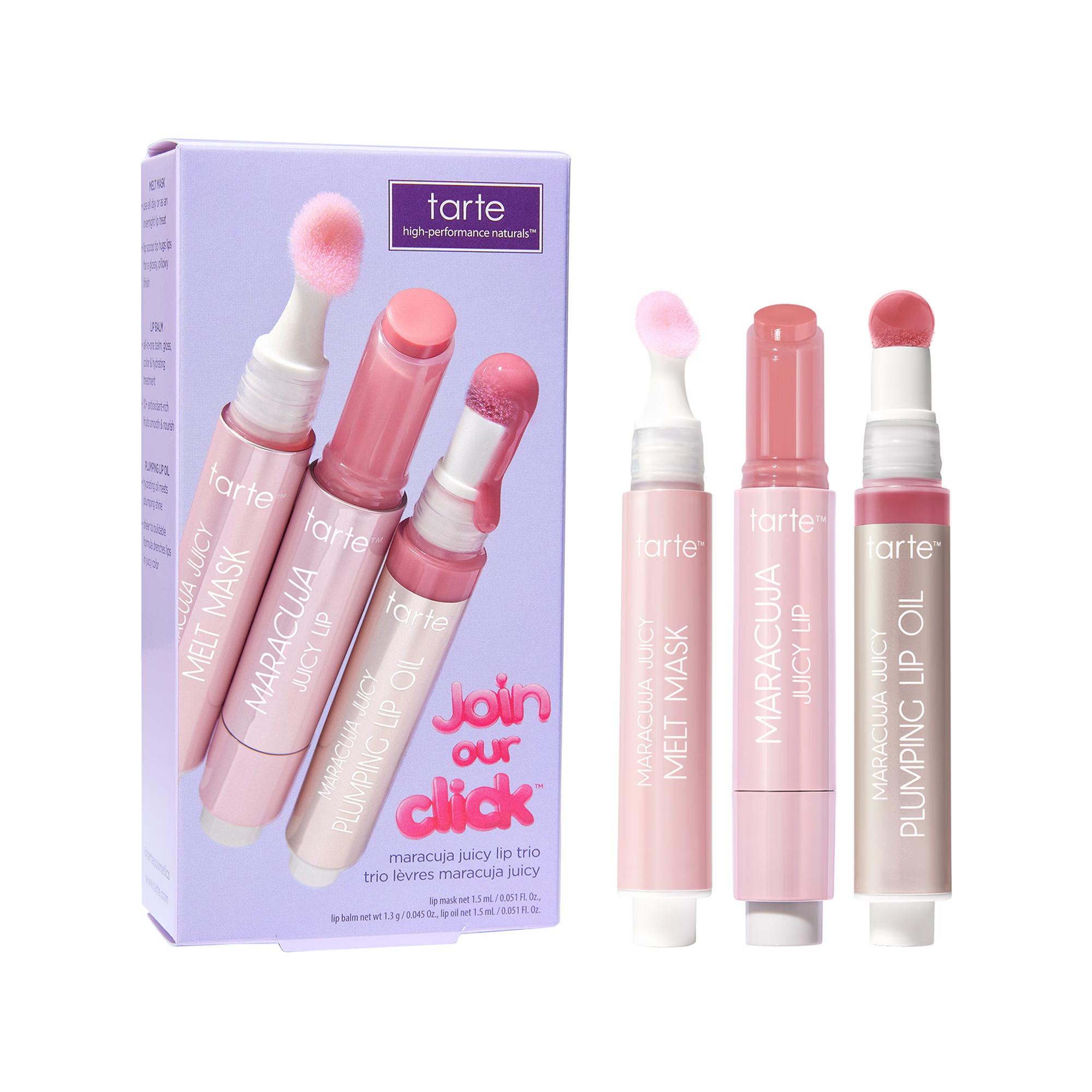 Ottieni il tuo balsamo, la tua maschera e il tuo olio rimpolpante preferiti in un unico set con il tarte™ join our click™ maracuja juicy lip trio - 1 rossetto è GRATIS!