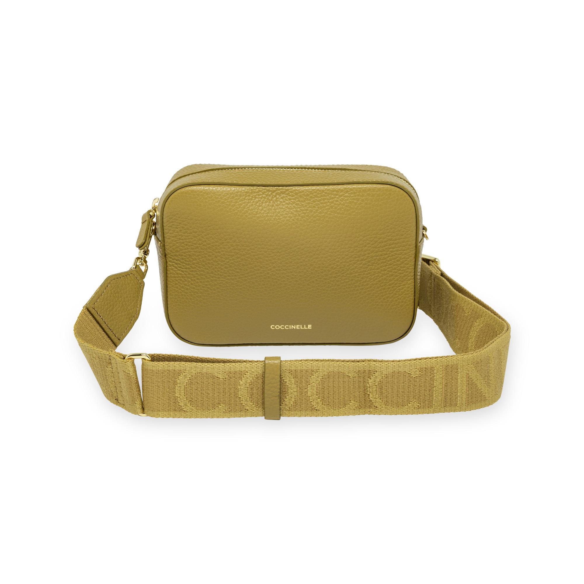 La reporter bag TEBE in pelle è un accessorio casual. La finitura goffrata e la combinazione di colori creano un mix di stile disinvolto con la tracolla e i dettagli in metallo dorato.