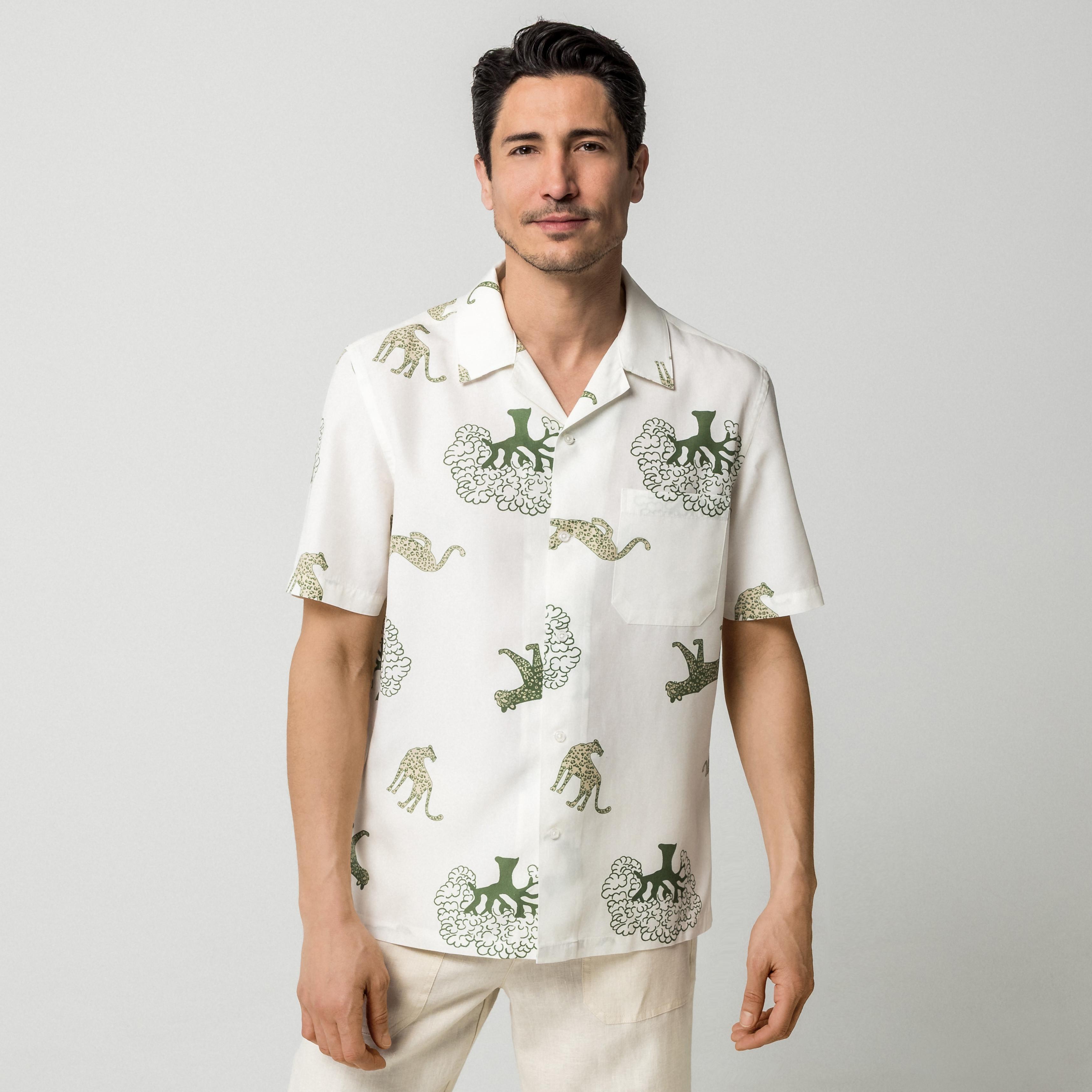 Questa camicia a maniche corte presenta un distintivo motivo floreale, offrendo un look elegante e contemporaneo. Il design include un colletto classico e una tasca sul petto, combinando funzionalità con un'estetica alla moda.