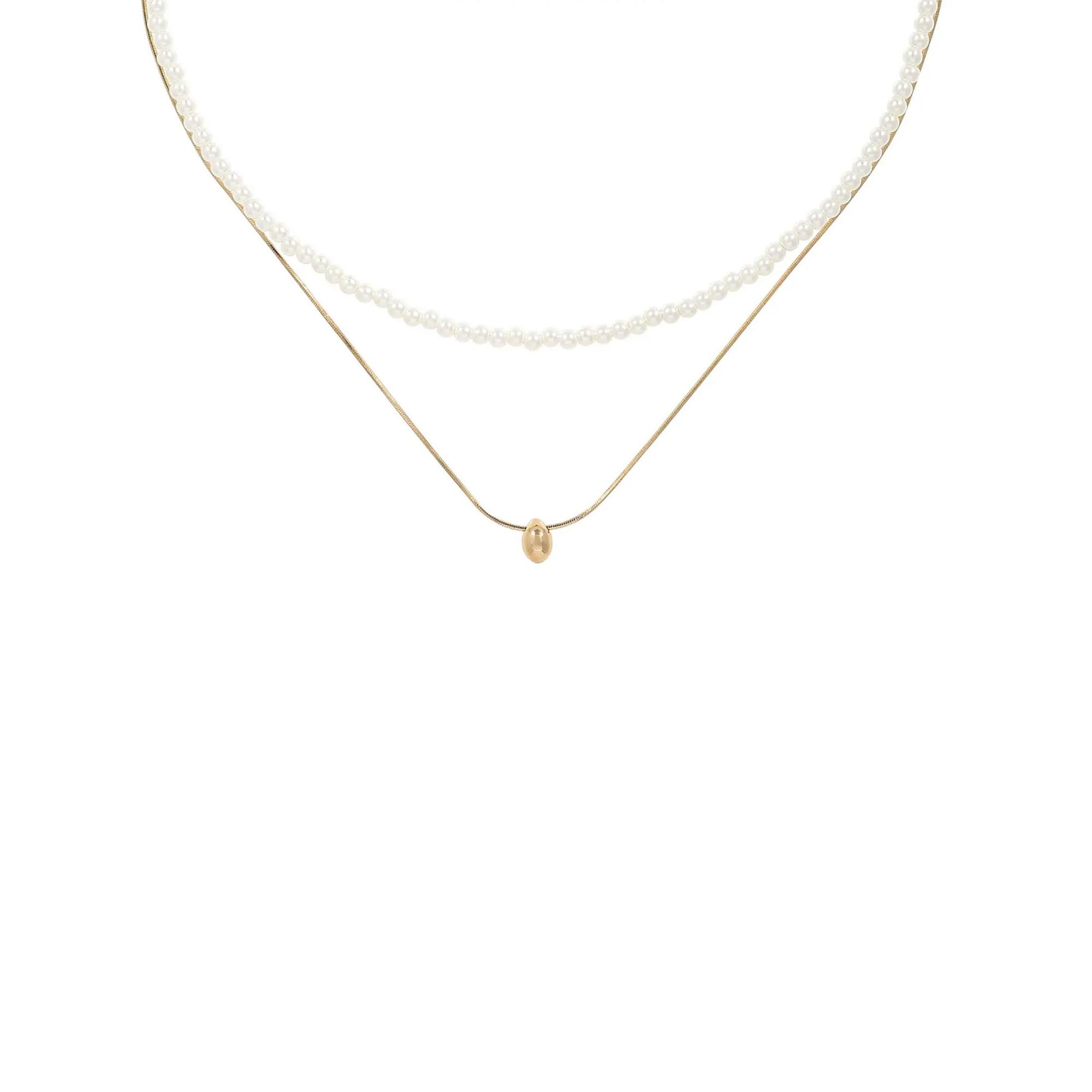 Il set di collane – Minimal Luxe è composto da due eleganti collane. Una è una collana di perle bianche e luccicanti, l’altra è una delicata catena a serpente dorata con un fine ciondolo a forma di goccia. Entrambe le collane hanno una catenina di prolunga.