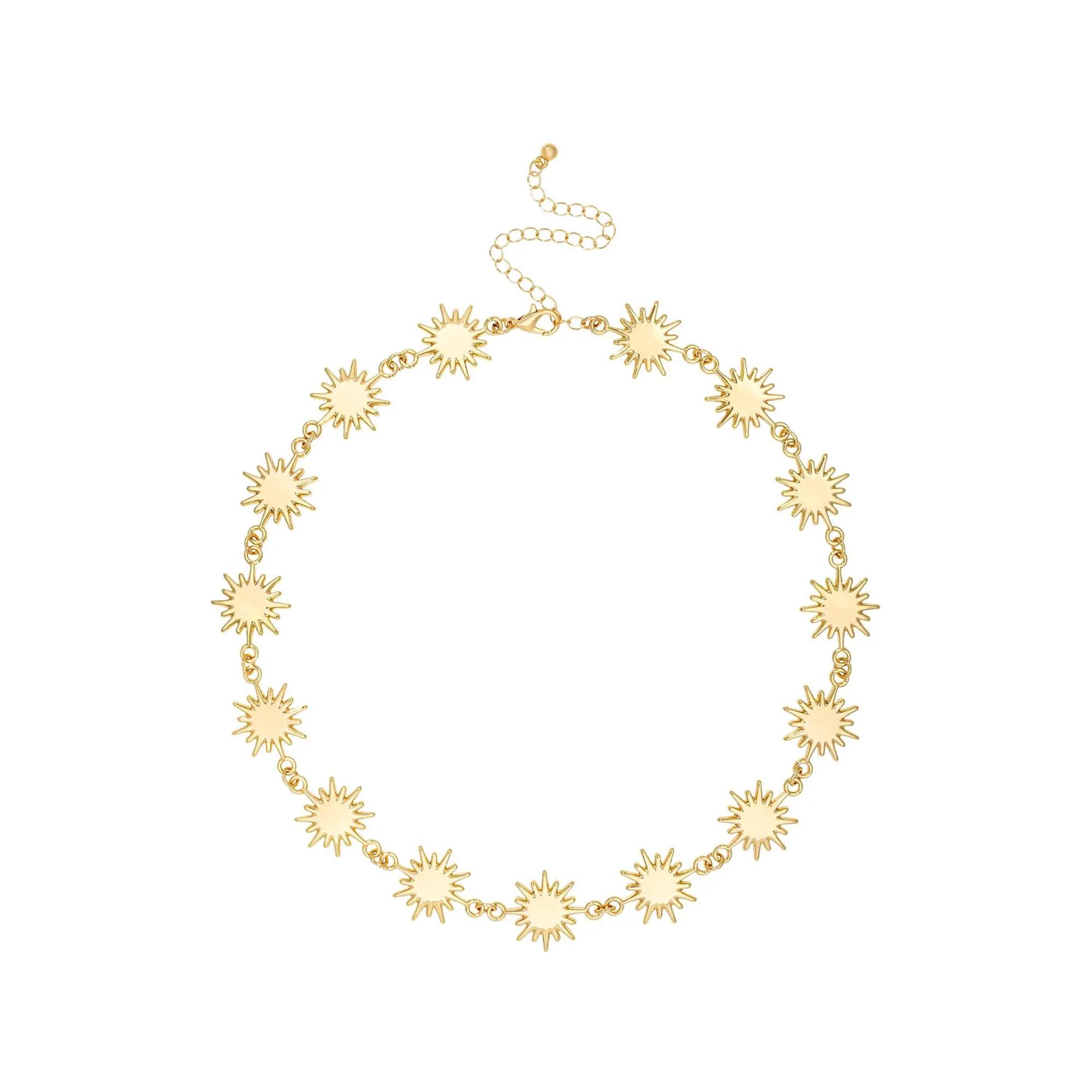 La collana – Wonderful Sun è dorata e composta da numerosi soli allineati. Questo accessorio estivo si abbina perfettamente ad altri gioielli!