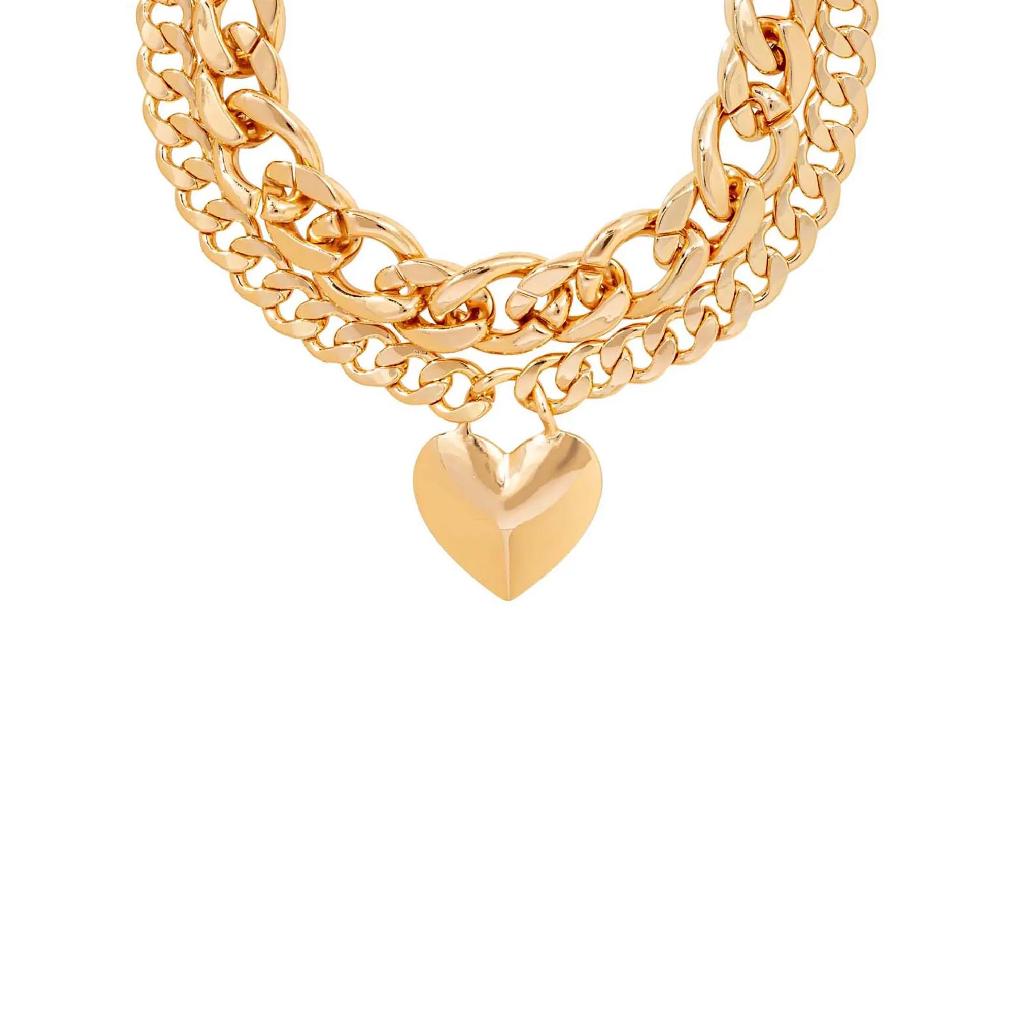 Il choker – Chunky Heart brilla in una tonalità dorata ed è composto da due fili di catene. Il filo inferiore è decorato con un cuore. La superficie è placcata in oro.