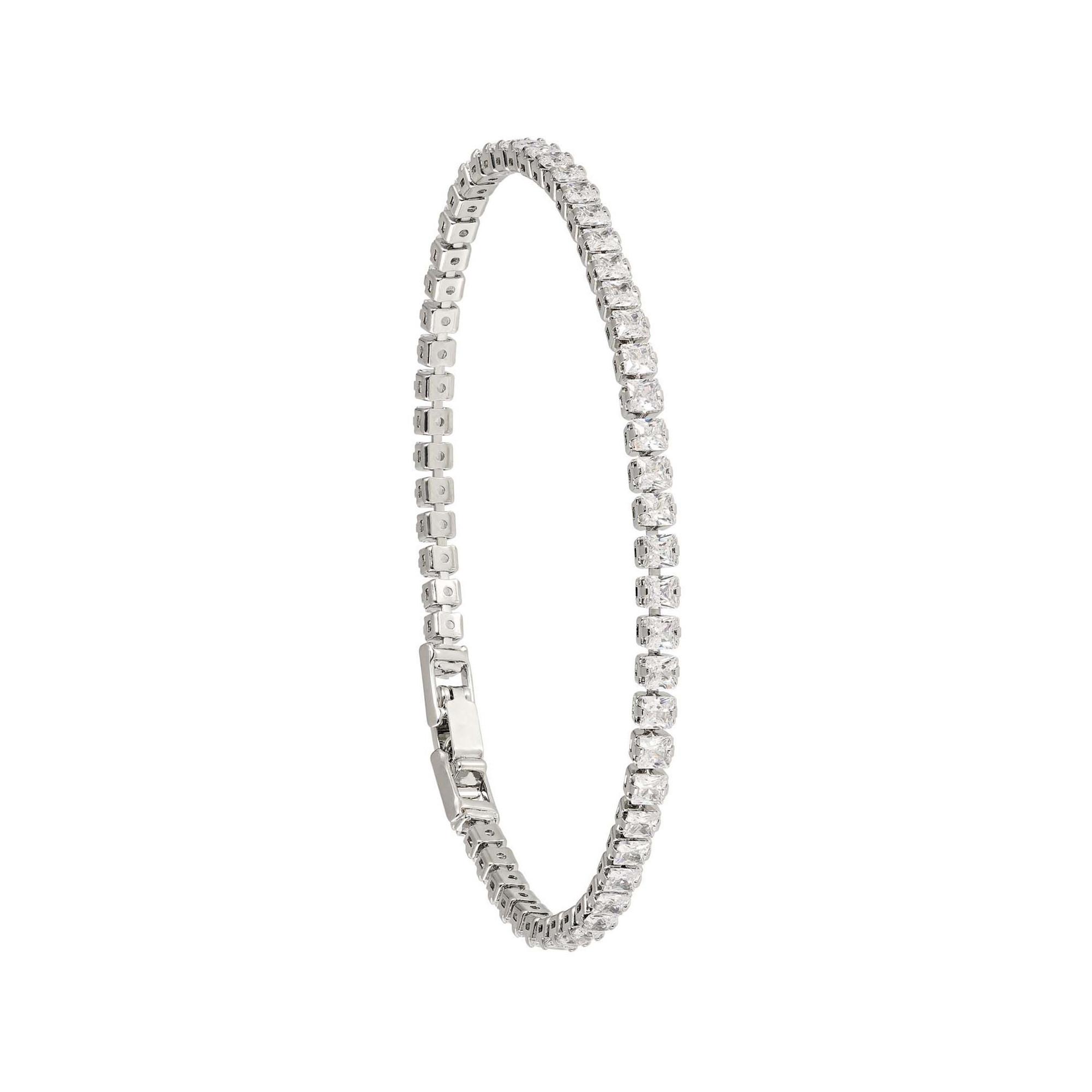 Il bracciale - Festive Zirkonia brilla di colore argento ed è rodiato. Il bracciale è decorato con numerosi zirconi cubici e si chiude con una chiusura a cerniera. È un bracciale tennis, perfetto da indossare in occasioni eleganti.