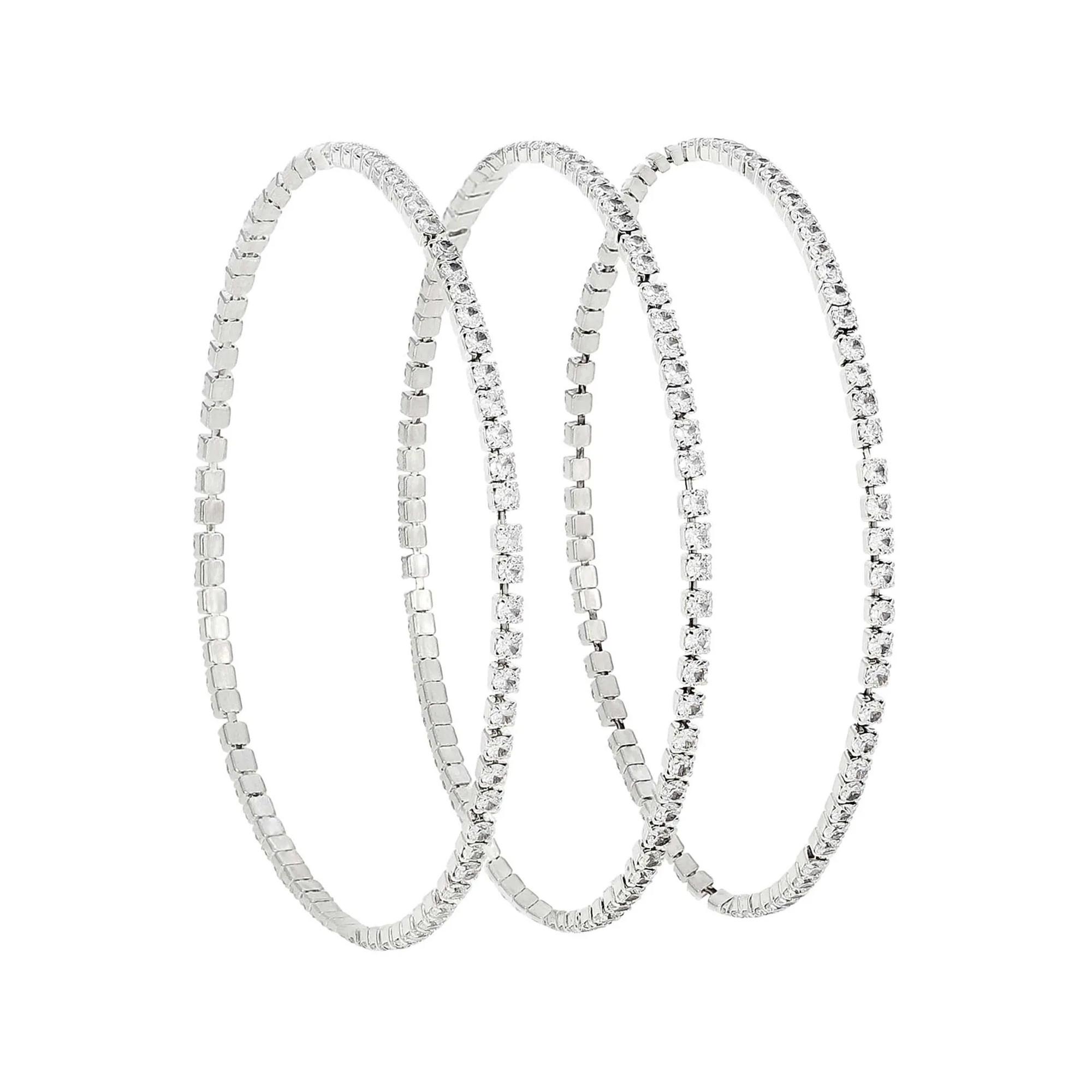 Il set di bracciali - Glossy Silver brilla di colore argento ed è composto da tre bracciali identici. Tutti sono bracciali tennis decorati con zirconi cubici argentati scintillanti.