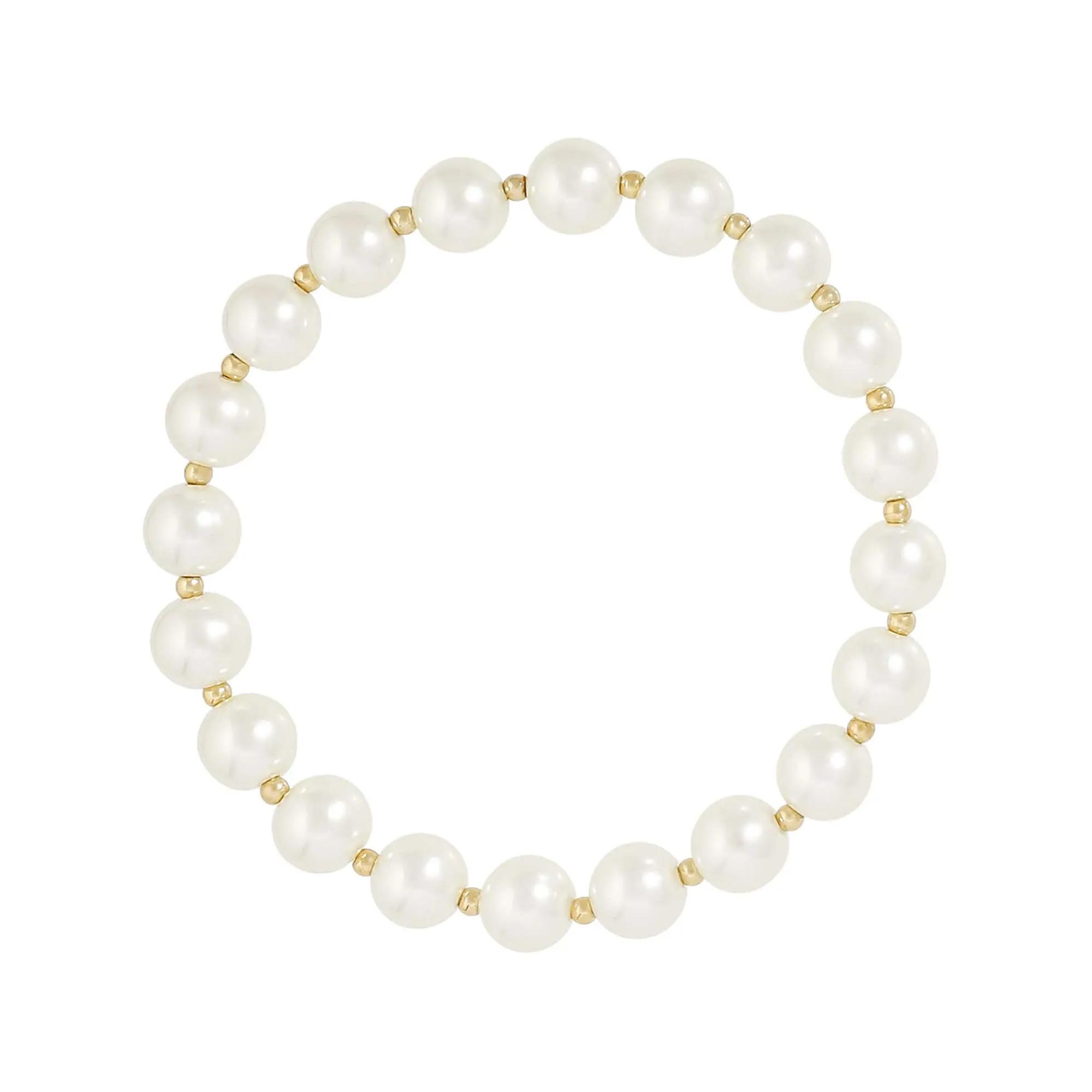 Il bracciale - Delicate Pearls è composto da perle artificiali bianche e sfere dorate. Le sfere hanno una superficie dorata. Il bracciale è realizzato con il 10 % di ottone riciclato.