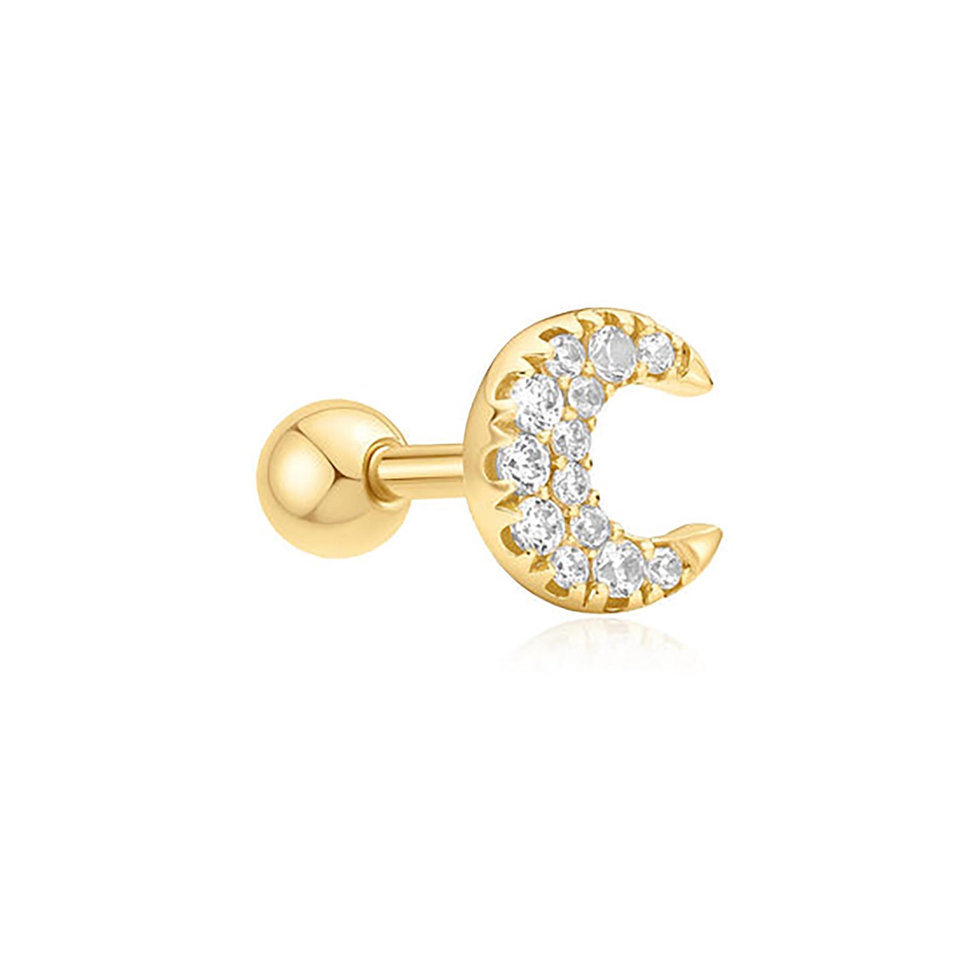 Questo orecchino a barra a forma di mezzaluna in argento sterling 925 con placcatura in oro 14kt e zirconi pavé dona un tocco celestiale e scintillante al tuo look. Con dimensioni di 5,6 x 5,2 mm e un peso di soli 0,4 g, è perfetto da indossare da solo o da abbinare ad altri orecchini per creare un Moonlit Ear Stack luminoso.