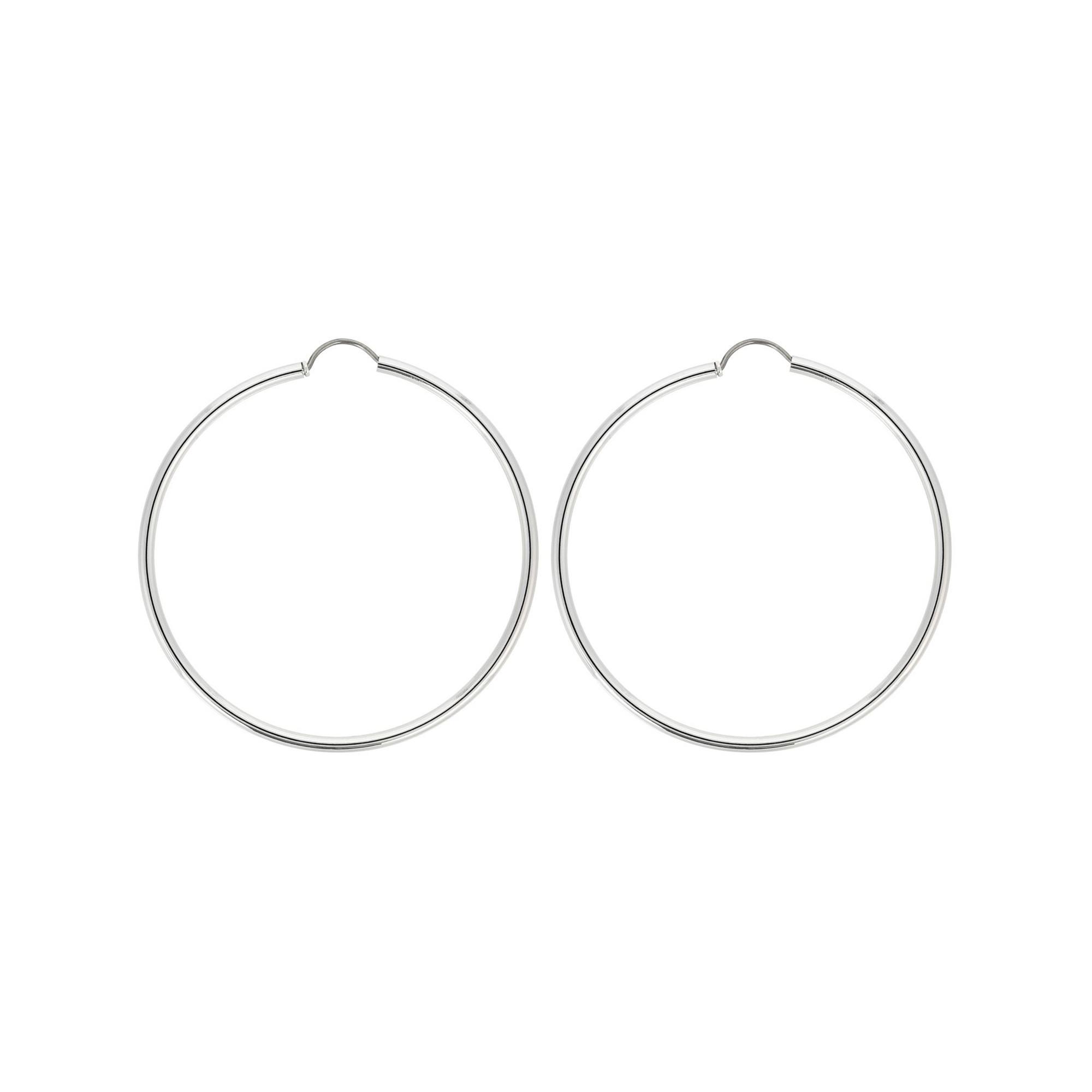Queste creoli argentate a forma circolare, con un diametro di 5 cm, sono allo stesso tempo vistose ed eleganti. Aggiungono un tocco sofisticato a ogni outfit.