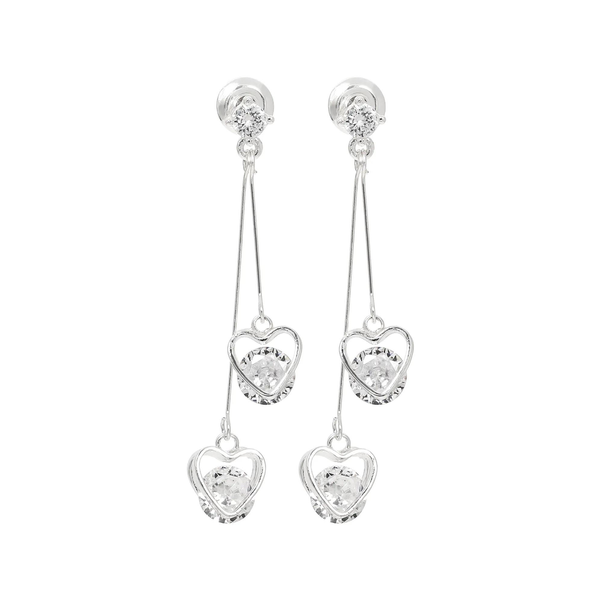 Gli orecchini a bottone - Double Shine scintillano in color argento e hanno ciascuno due pendenti a forma di cuore. Tutti i pendenti sono decorati con una scintillante pietra di zirconia cubica.
