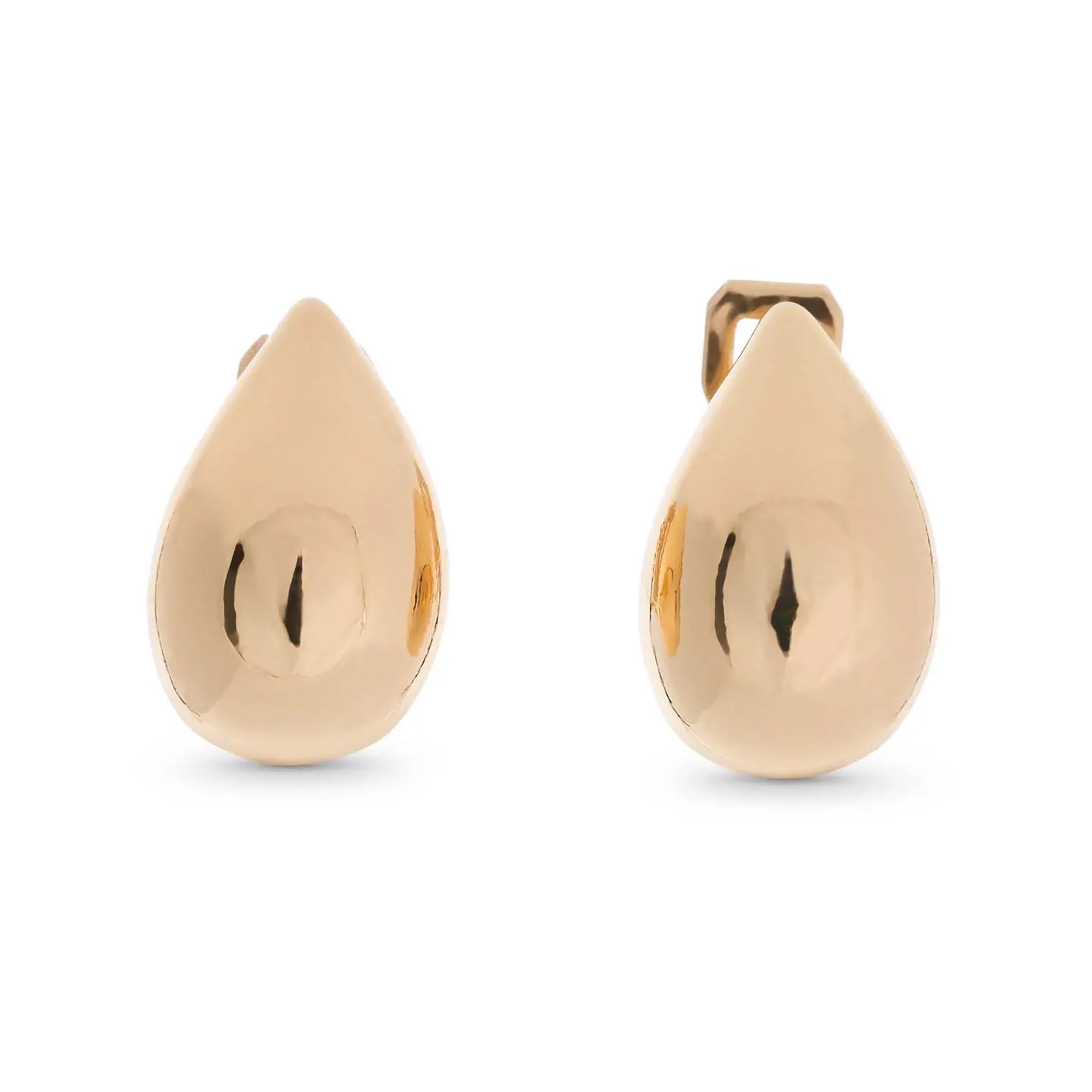Gli Orecchini a clip – Shiny Drop brillano in un elegante tono dorato e colpiscono con il loro design tridimensionale a goccia, moderno e raffinato allo stesso tempo. Il retro cavo li rende particolarmente leggeri e confortevoli da indossare – perfetti per un look elegante e di grande impatto.