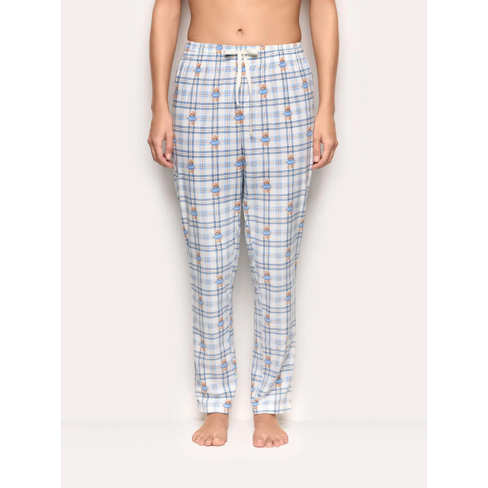 Questi pantaloni del pigiama presentano un affascinante motivo a quadri con adorabili orsetti, offrendo un'opzione comoda e giocosa per l'abbigliamento da casa o da notte. La vita elasticizzata con coulisse assicura una vestibilità sicura e regolabile.