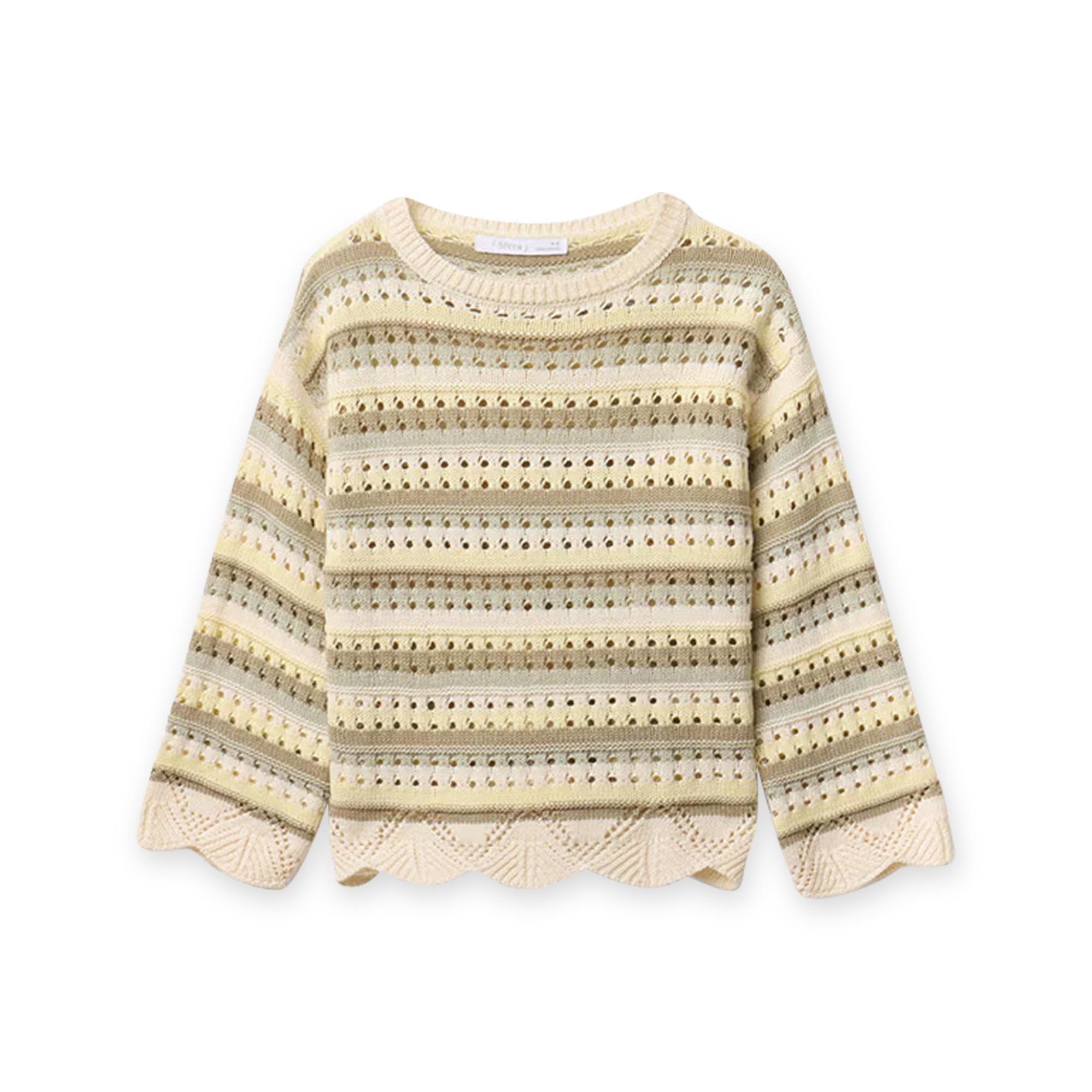 Questo maglione in maglia a righe multicolore dona un tocco vivace al guardaroba dei bambini. Il tessuto morbido assicura un comfort elevato ed è ideale per l’uso quotidiano. Un capo allegro e facile da abbinare.