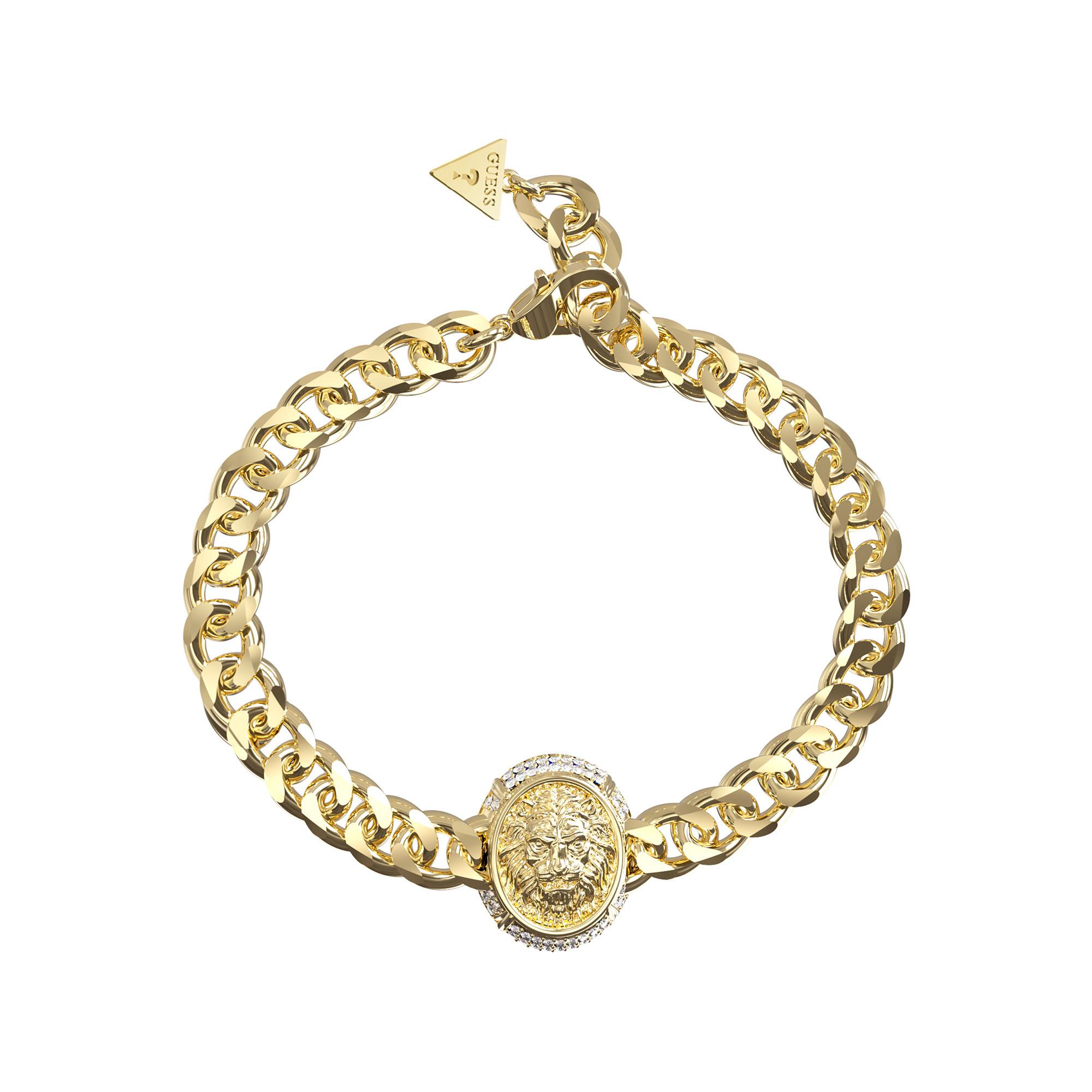 Questo bracciale di grande impatto in acciaio inossidabile color oro colpisce per la catena a maglie decise e il ciondolo a medaglione decorativo. Le pietre in zirconia cubica incastonate esaltano il motivo con una brillantezza elegante e moderna. Un gioiello di carattere, perfetto per dare personalità a ogni look, con chiusura a moschettone sicura.