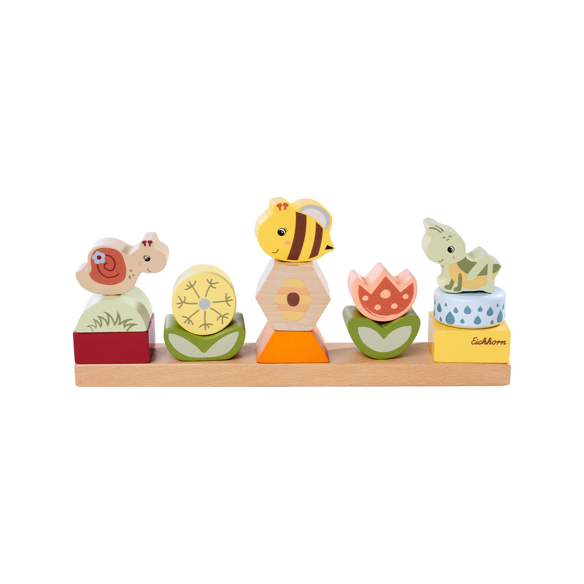 Con il gioco da incastrare in legno Eichhorn della linea Bee Happy, realizzato con cura, i bambini si immergono in un mondo colorato di forme e colori. Il set comprende 13 mattoncini unici, tra cui una allegra cavalletta, una graziosa lumaca, un'ape laboriosa e incantevoli forme di fiori e foglie. I più piccoli possono infilare i mattoncini a loro piacimento sui robusti bastoncini di legno, stimolando in modo giocoso le loro capacità motorie fini e la coordinazione occhio-mano. Realizzato in legno certificato FSC al 100%, il gioco da incastrare Eichhorn Bee Happy non è solo sinonimo di divertimento sicuro, ma anche di sostenibilità. È il regalo perfetto per i piccoli costruttori, a partire da un anno di età, che amano scoprire cose nuove e sviluppare le loro capacità motorie.