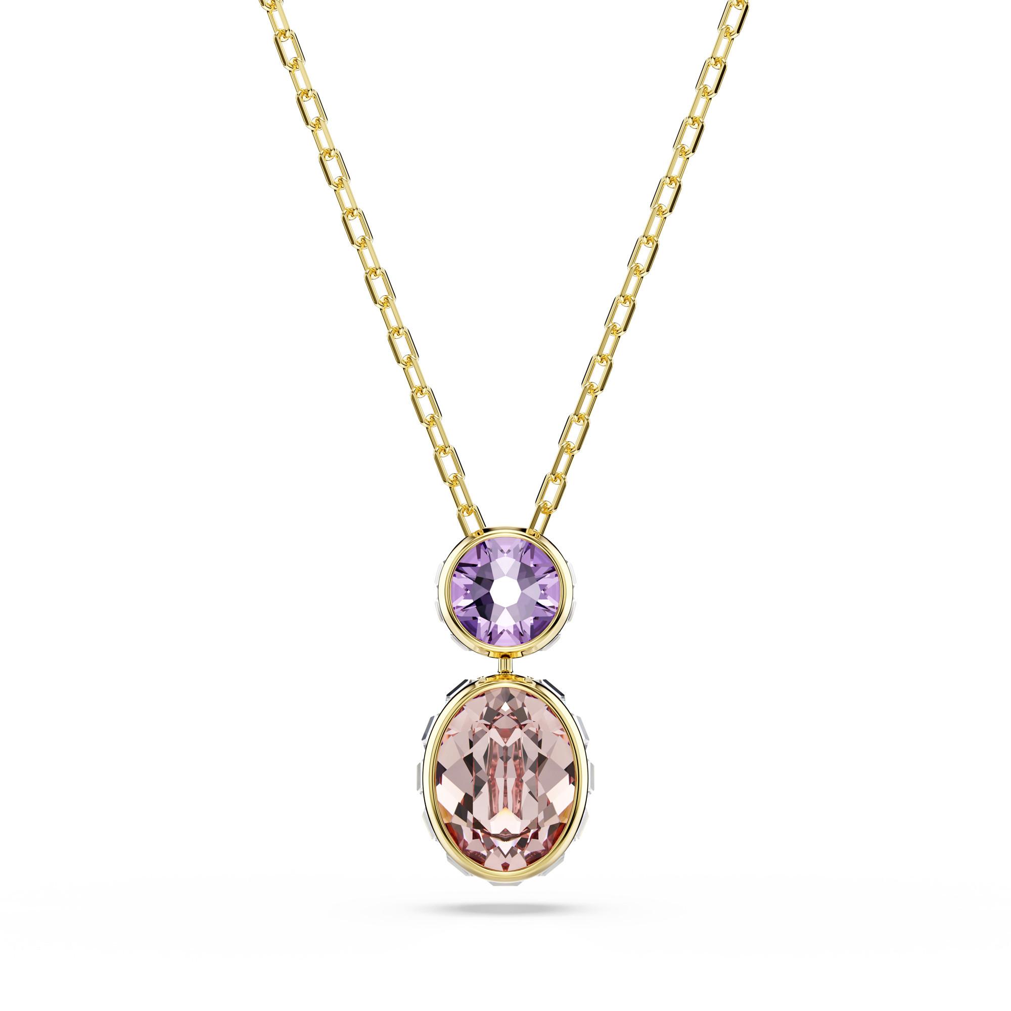 Questo ciondolo Chroma permette di ruotare e girare l’elemento in cristallo a piacimento. Il design in lega dorata presenta un elemento centrale in cristallo viola e un elemento più grande e reversibile sotto, trasparente da un lato e rosa dall’altro. Puoi indossarlo in modi diversi per esprimere la tua personalità con stile.