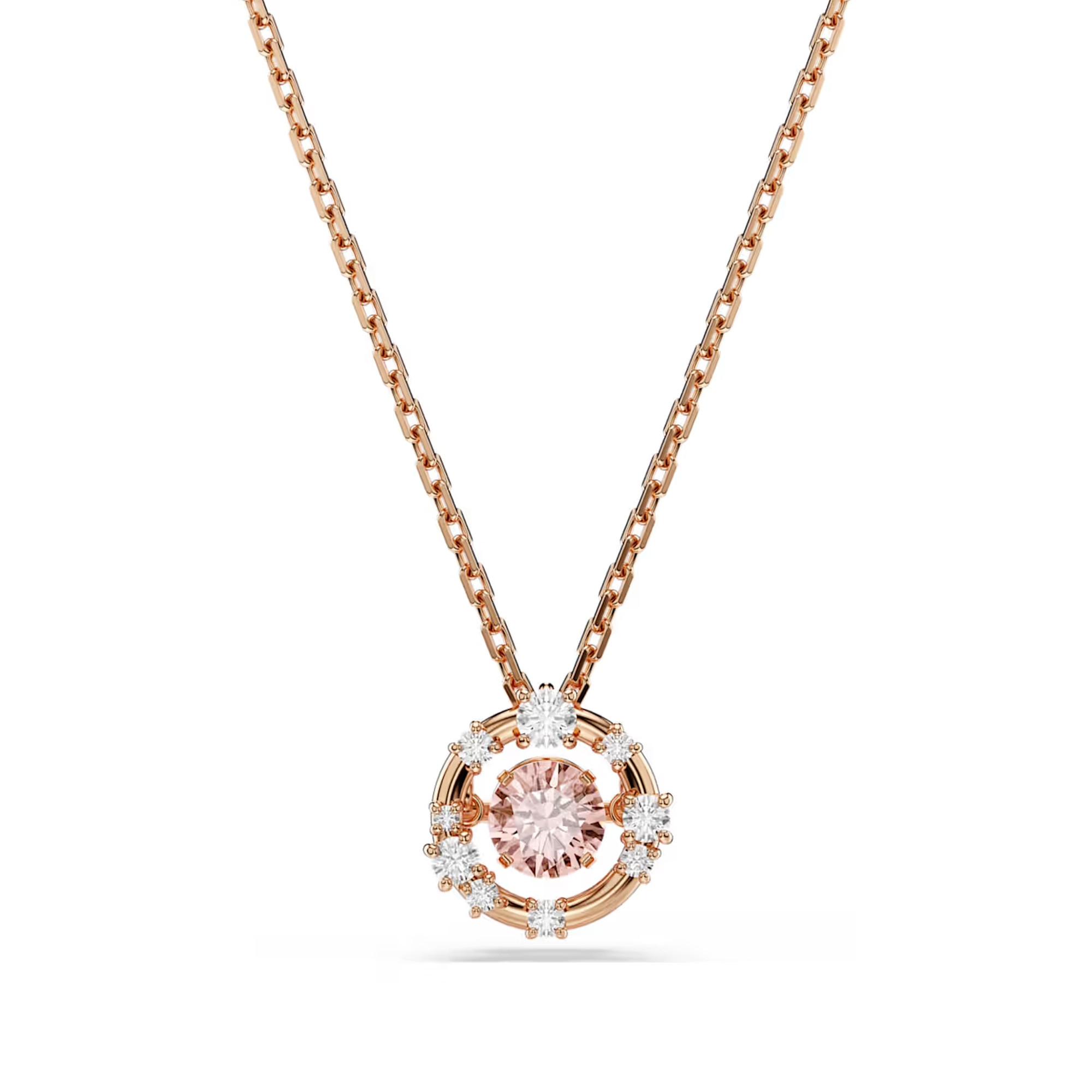 Scintillando come un cielo stellato, questo pendente Constella è un brillante esempio della maestria di Swarovski nella gestione della luce. Il design placcato oro rosa presenta un Dancing Stone al centro, che crea riflessi infiniti, mentre piccoli Swarovski Zirconia sono posizionati intorno alla cornice metallica. Indossate questo pendente con gli orecchini coordinati per lanciare il vostro stile nel cosmo.