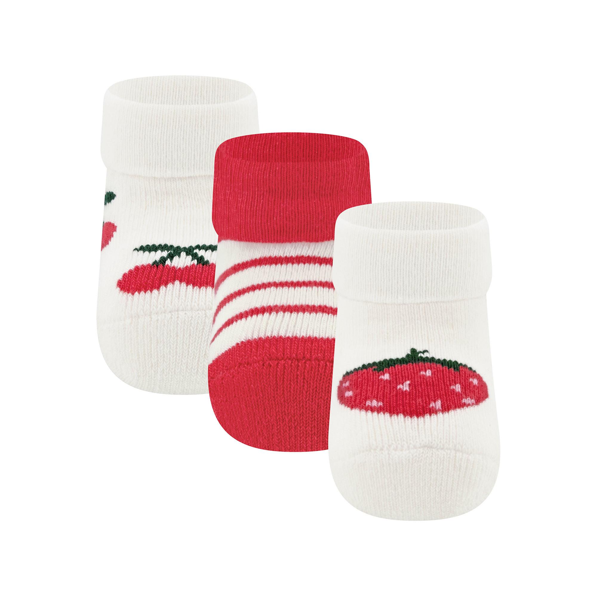 Questa confezione da 3 calzini neonato con risvolto, decorati con dolci motivi di frutta e righe, è il regalo perfetto per neonati e bebè.