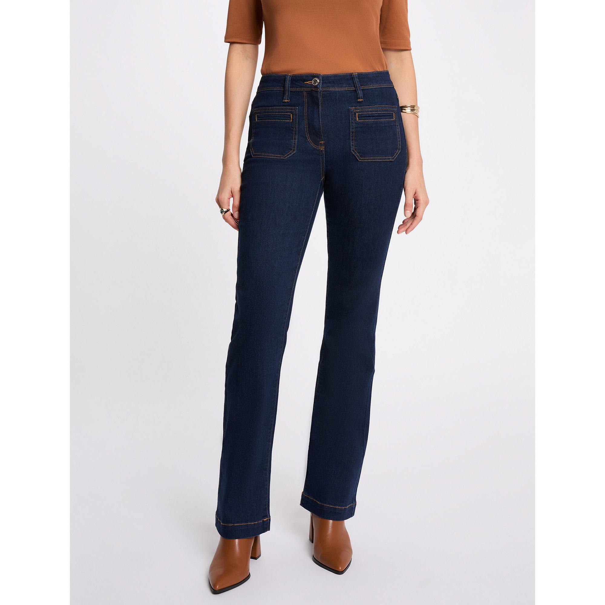 Questi jeans svasati presentano un design classico con un tocco moderno, rendendoli un'aggiunta versatile a qualsiasi guardaroba. Il lavaggio scuro e le cuciture a contrasto offrono un look sofisticato, mentre la gamba svasata garantisce una silhouette comoda ed elegante.